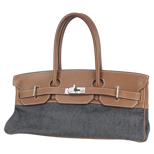 エルメス定番人気の【バーキン】を横長にし、肩にフィットさせるために大きくしたハンドルがポイントの肩掛けショルダータイプの【ショルダーバーキン】が登場。マチ幅が広く設計されているので、必需品をしっかりと持ち運べる人気の逸品でございます。今では廃番となってしまったデニム素材"トワルジーン"の組み合わせは、非常に貴重なお品物となっております。