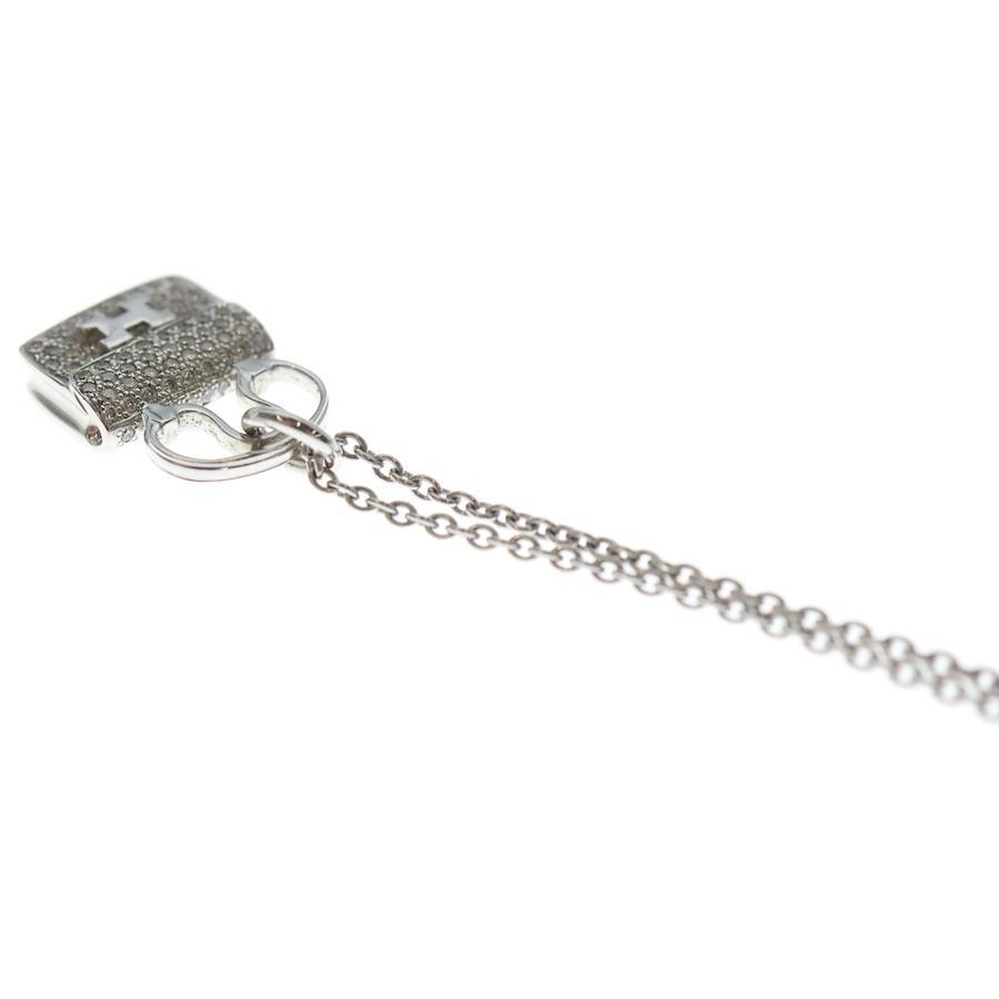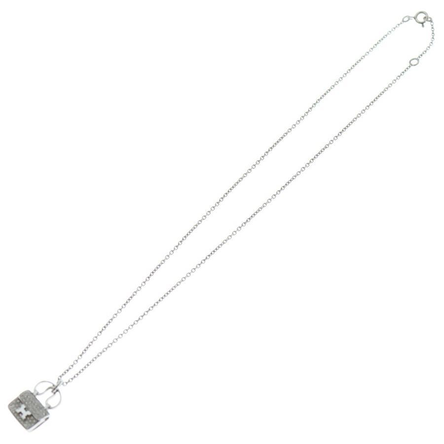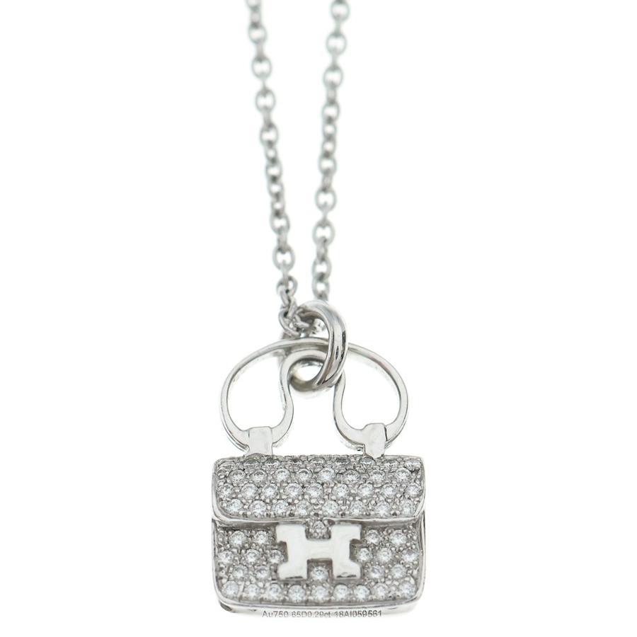 HERMES Amulet Constance H Logo Bag Motif Necklace in White Gold with 0.29ct Diamonds (18K White Gold)