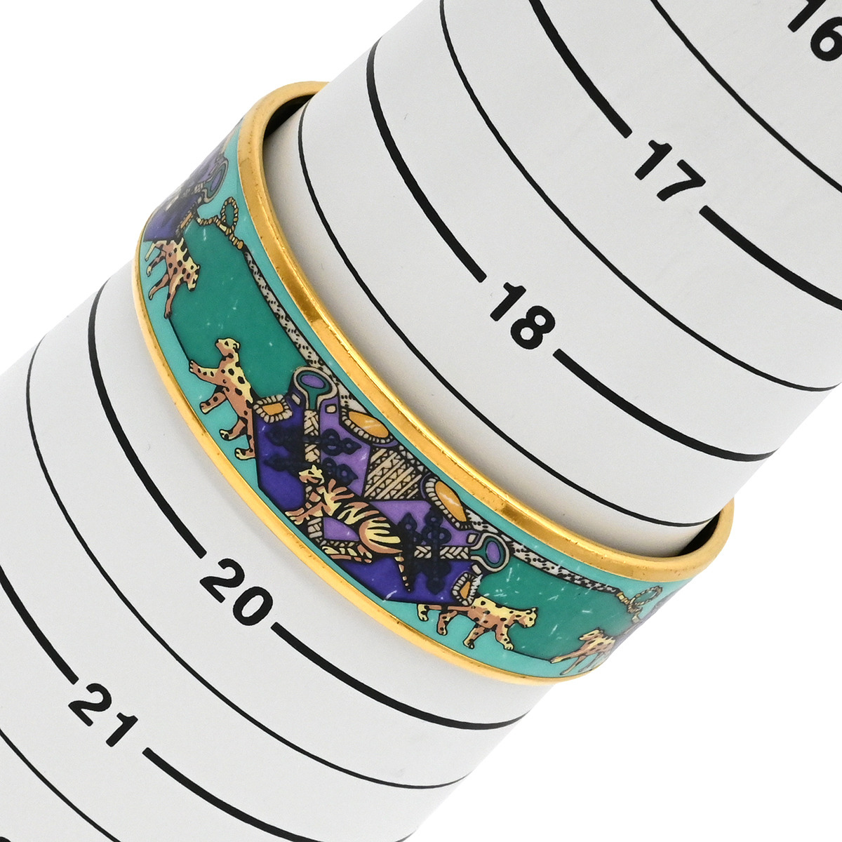 Hermès GM Enameled Enameled Bangle, Green and Multicolor, Animal Print, Leopard and Tiger, Gold Hardware - Women's [Box] Classic, Popular, Excellent ConditionBrand: HermèsModel Number: -FeaturesColor: Green and MulticolorMaterial: EnameledSize: Fits wrists up to 19cmMaximum Width: 1.9cmInner Diameter: 6.3cmWeight: 37gAccessories: Box*No accessories other than those listed are included.Rank: A [Overall Condition Details]There is minor damage due to use and storage, but the item is in relatively good condition. *See images and comments.[Condition Details] Pre-owned, Excellent ConditionThere are scratches, minor dents, and discoloration throughout. *There is a tear in the box as shown in the image.