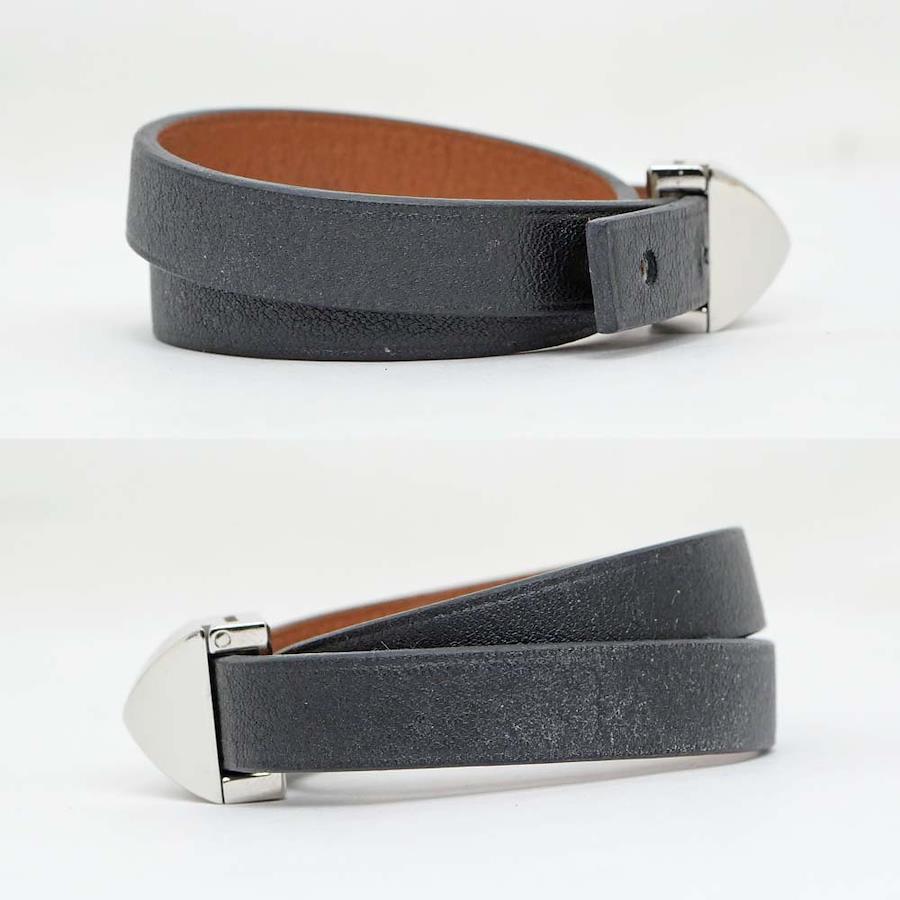 Brand: [HERMES] HermesProduct name: Bracelet Medor Infinie Double TourModel number:Serial No.Stamp: A stamp (made in 2017)MADE IN FRANCEMaterial: Leather, metalStone:Color: Black, silver hardwareSize: Listed size: T2Width: Approx. 1.0 cm (inner circumference: Max. 14.6 cm/double wrapped)Silver motif: Approx. W1.5 cm x H1.5 cm x D1.5 cm*Please allow for slight errors.Weight: Approx. 16.5 gReference retail priceAccessories: Main unit only