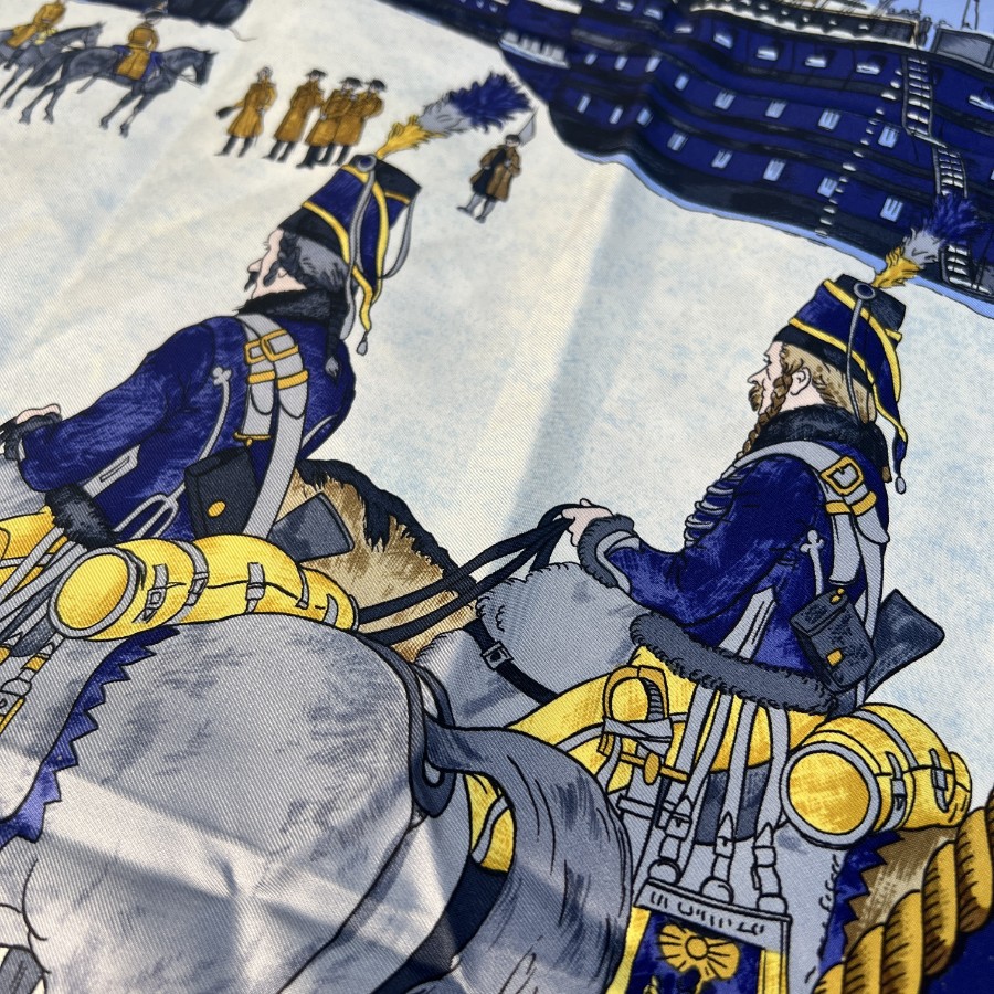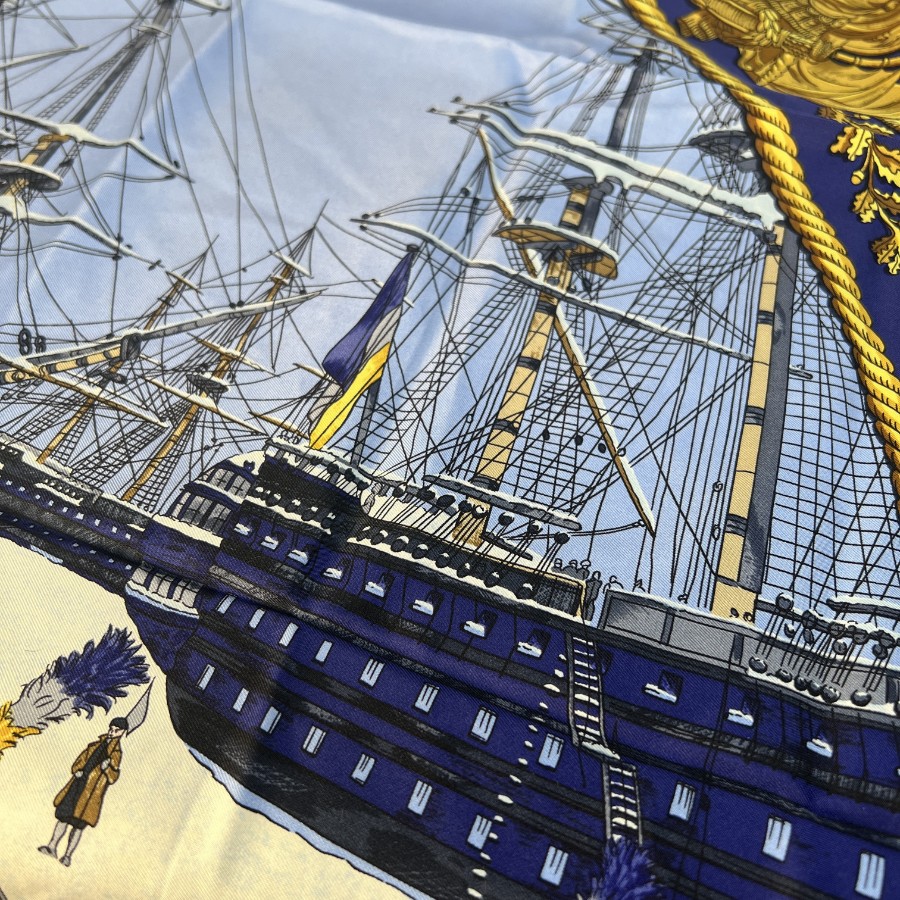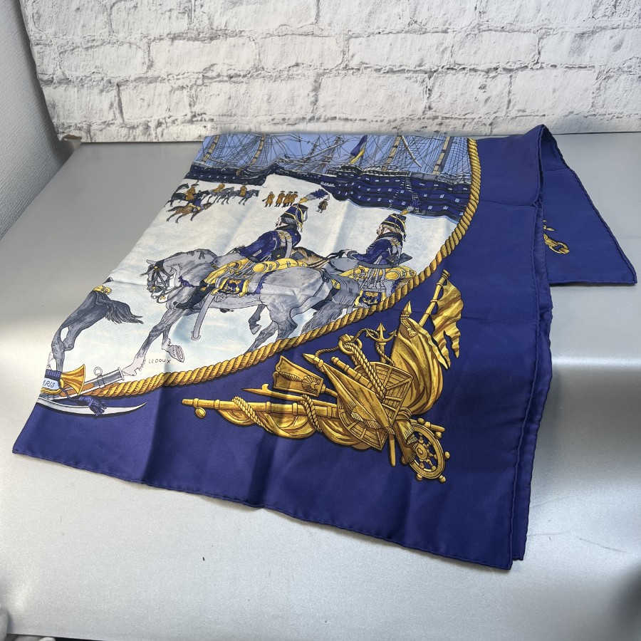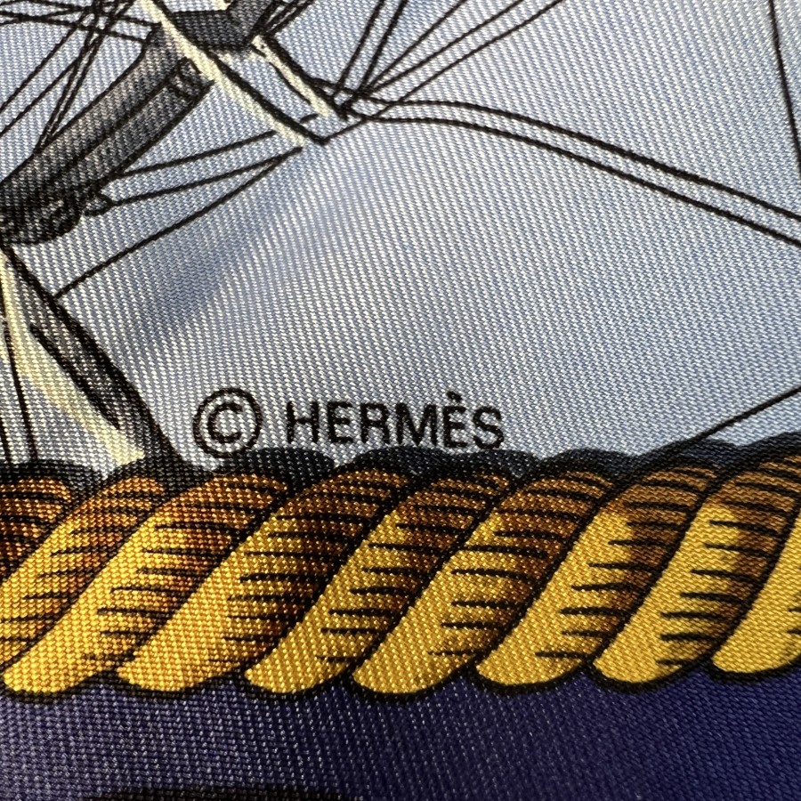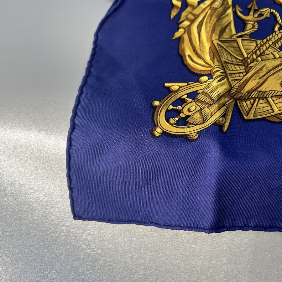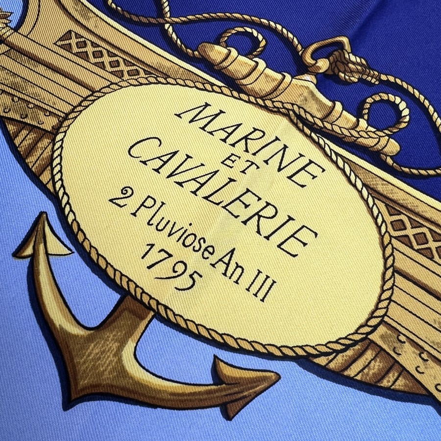 【アイテム】美品 HERMES エルメス カレ90 シルク スカーフ ブルー A-11944