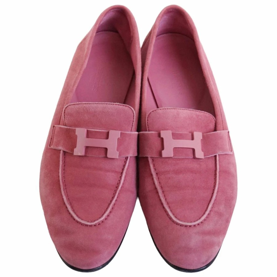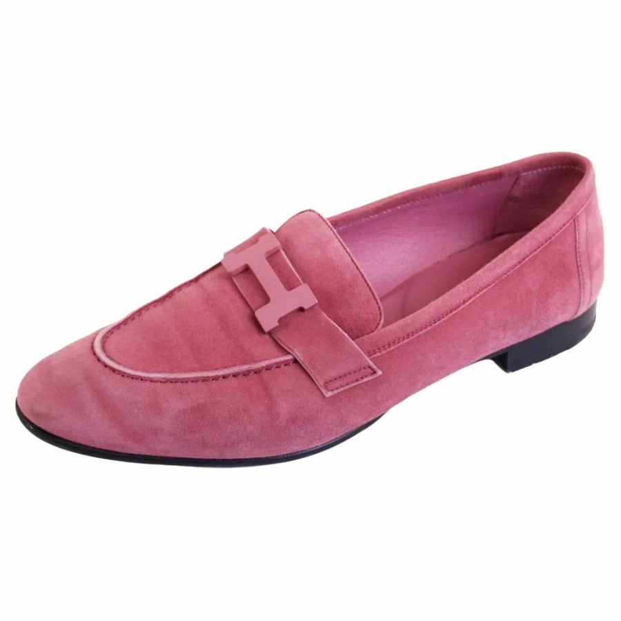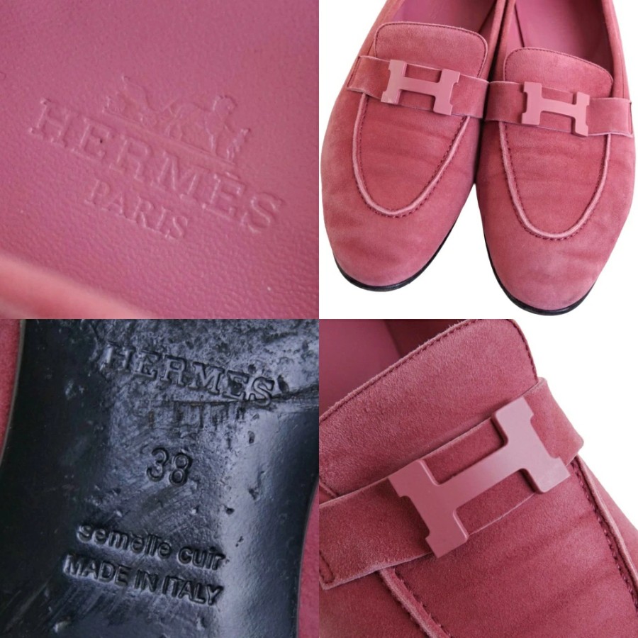 エルメス HERMES ローファー 2022 モカシン PARIS パリ コンスタンス Hロゴ金具 スウェードレザー シューズ レディース イタリア製 ピンク サイズ38(25cm相当)