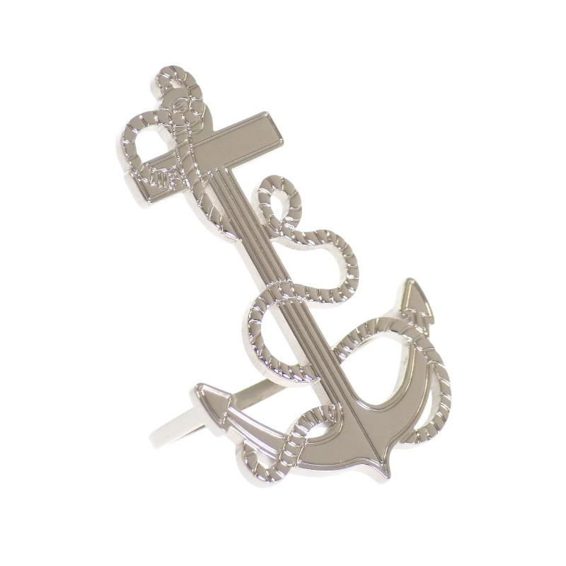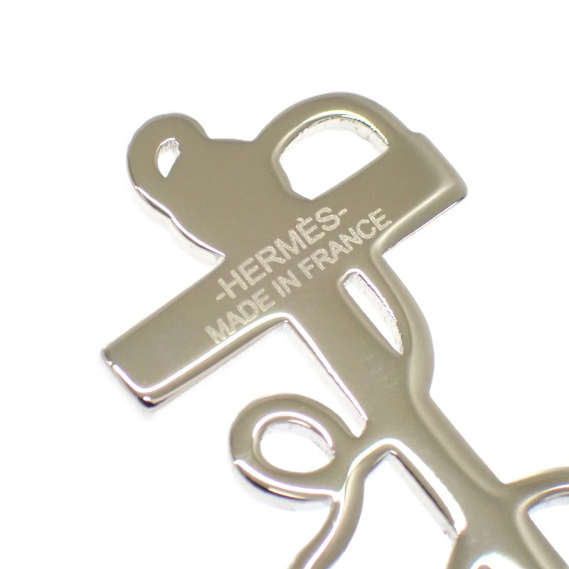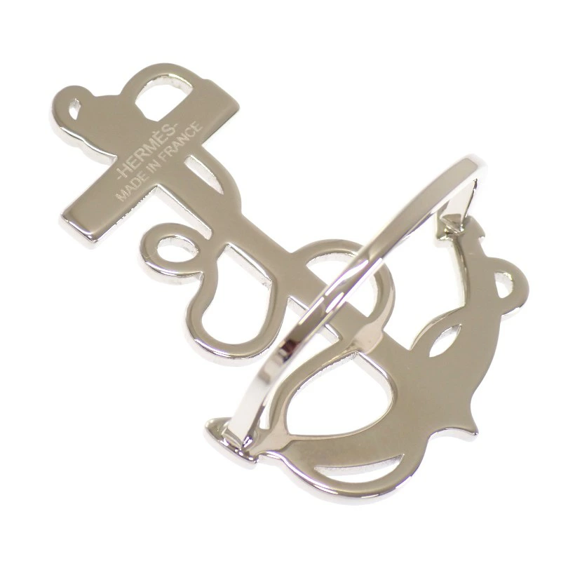 錨(アンカー)モチーフをベースにしたデザインは、エルメスらしい上品さの中に程よい遊び心を感じさせる仕上がり。シンプルながらも立体感のあるフォルムが、スカーフスタイルにアクセントを加え、コーディネート全体を洗練された印象へ導きます。素材には真鍮を使用し、パラディウム仕上げを施すことで、落ち着いた輝きと耐久性を両立。シルバー系のクールなトーンは、カジュアルからフォーマルまで幅広くマッチします。