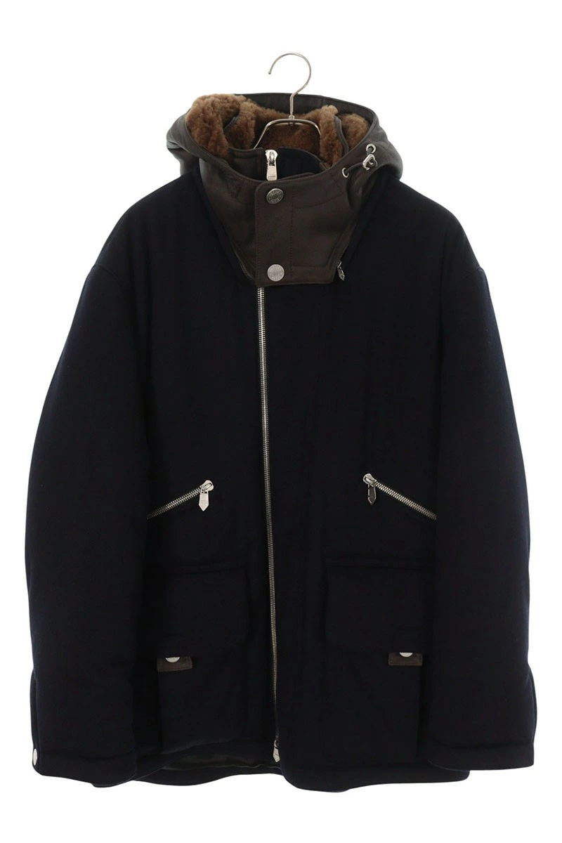 ランク:C (ダメージ、汚れが目立つ商品)状態備考:フード、右ポケットのボタンが破損しています全体的に若干の擦れ、毛羽立ちがありますブランド:エルメスサイズ:48色:ネイビー×ブラウン実寸:肩幅53cm 身幅58cm 着丈79.5cm 袖丈60.5cm重さ:-素材:(表地) カシミヤ (皮革部分) 羊革 (中綿) ポリエステル84%、ナイロン16% (裏地) キュプラ付属品:タグありその他特徴:フード取り外し可能です管理番号:10102-250206-0175