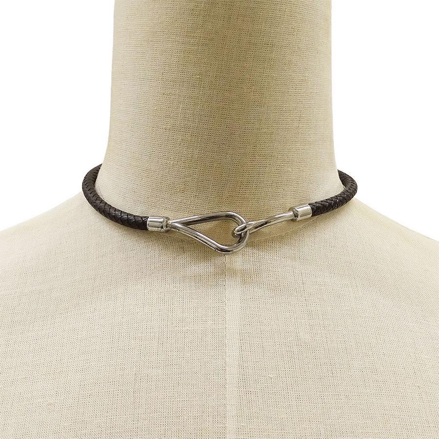 Hermès HERMES Choker, Brand: Jumbo Leather, Black, Silver Hardware, Accessory, 2-Way Bracelet, Stylish