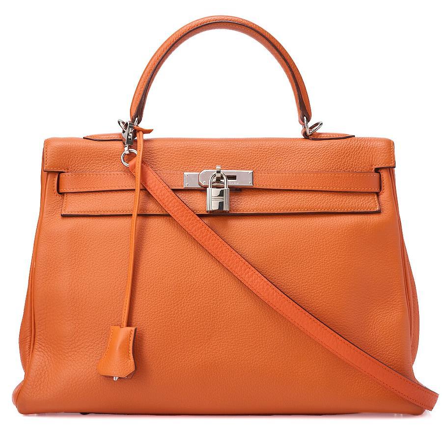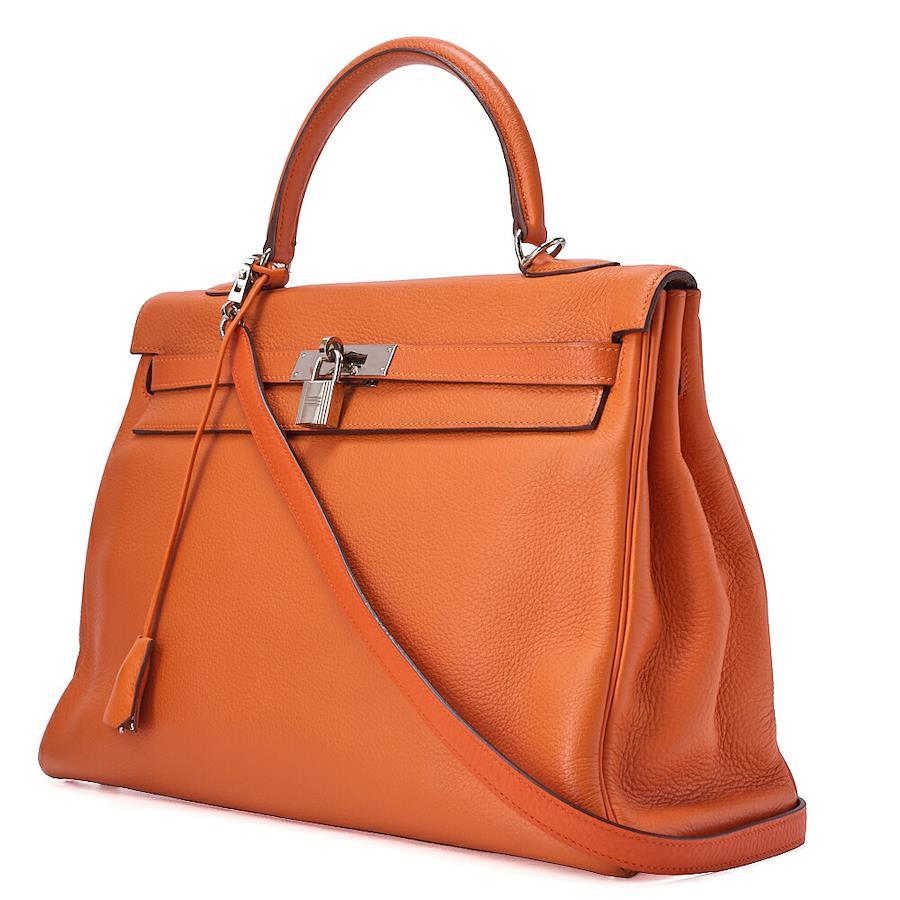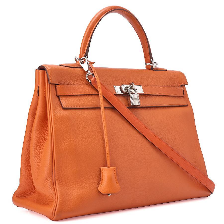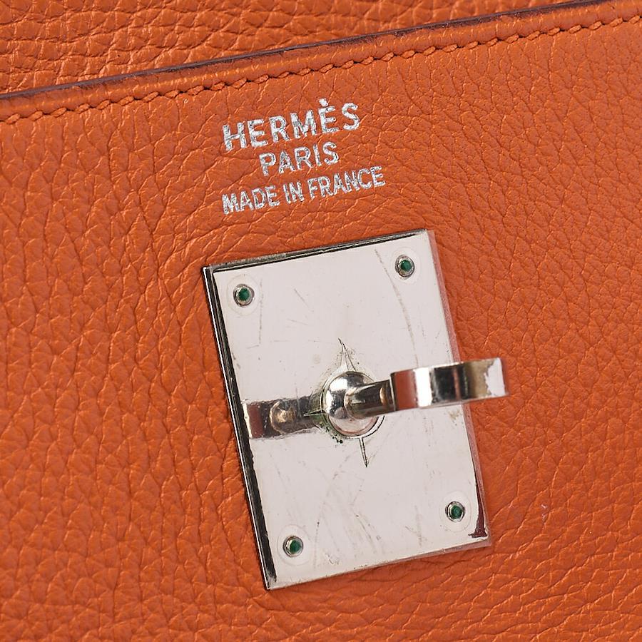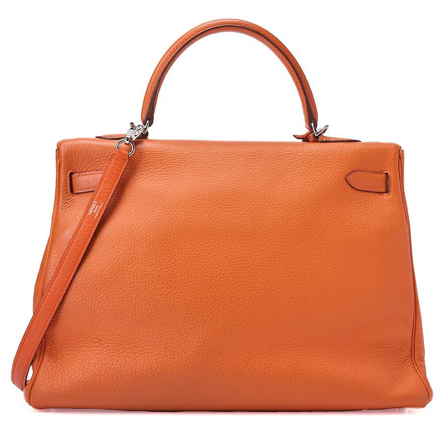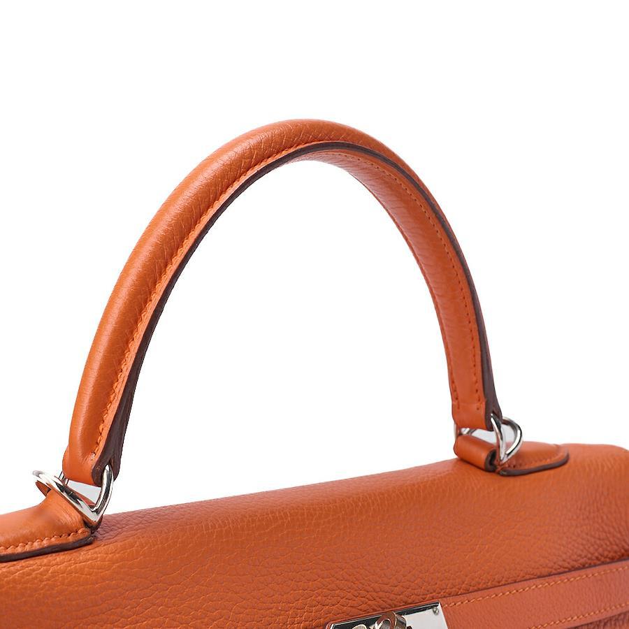 HERMES Kelly 35, inner stitching, Taurillon leather, 2-way handbag, orange (silver hardware), 2-way women's bag, high-end brand [pre-owned]