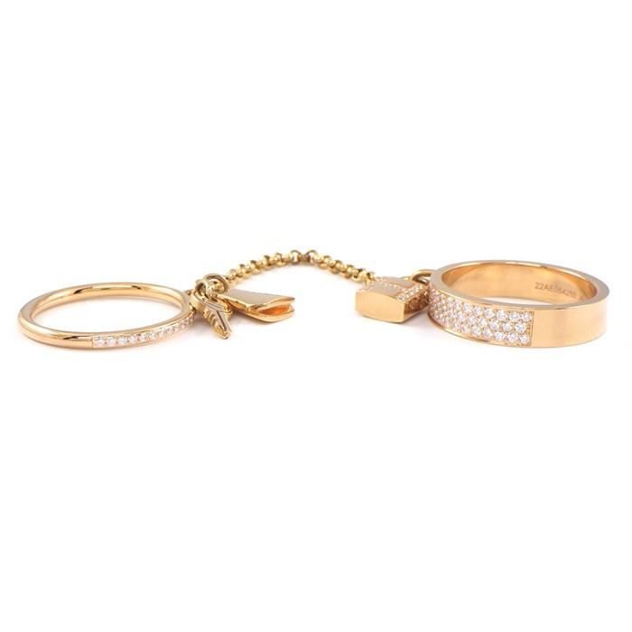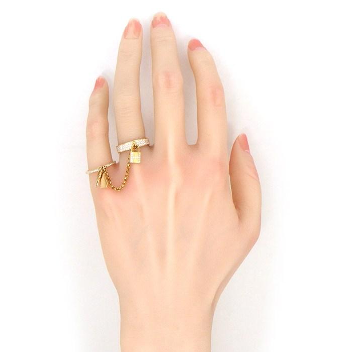 HERMES リング ケリークロシェット 2 トゥー フィンガー ダブルリング カデナ 錠 キー チェーン ハーフ ダイヤモンド 計0.75ct K18PG 12号/9.5号 / #52 【箱・保付き】 【中古】