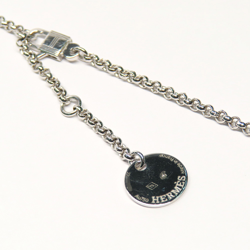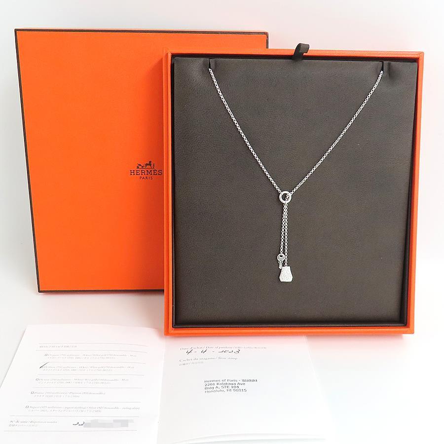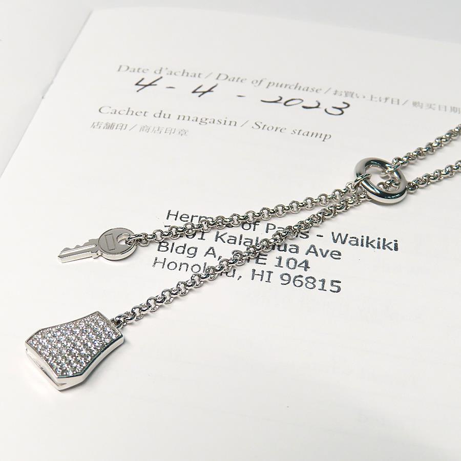 Product Rank: SCondition: This necklace was purchased at an Hermès boutique in Hawaii (WAIKIKI) in 2023 and has been stored with little use since.There are some minor scratches on the polished finish, but it is in like-new condition.Please see the images for details and feel free to contact us with any questions.*The texture and color may appear different from the actual product depending on the shooting environment and your monitor settings.Brand: HERMESProduct Name: Kelly Crochet Diamond NecklaceModel Number:Serial No.: 22A*******Stamp: HERMES 22A******* Made in France Au750Material: Au750WGStone: 0.53ct DiamondColor: White GoldSize: Chain Length: Approx. 40.0cm (Adjustable in 2 Positions)Key Motif: Approx. 0.56cm WCrochet Motif: Approx. 0.93cm WPlease note that slight variations may occur.Weight: Approx. 13.2gReference Price:Accessories: Box (Cracked Edge of Outer Box) and Warranty Card (Issued April 2023)