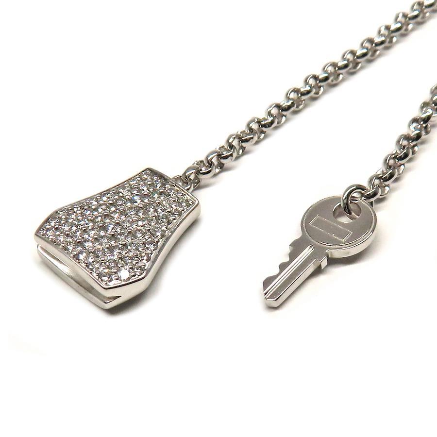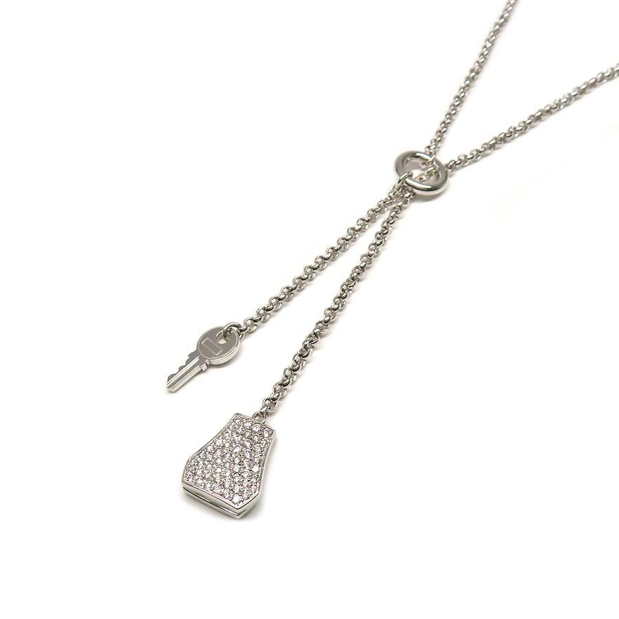 Hermès Kelly Clochet PM Necklace, 750 White Gold, 18K Gold with Pavé Diamonds, Excellent Condition, Polished