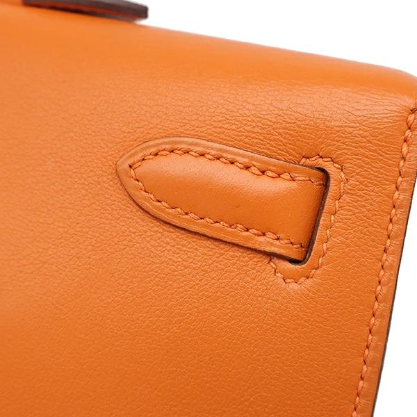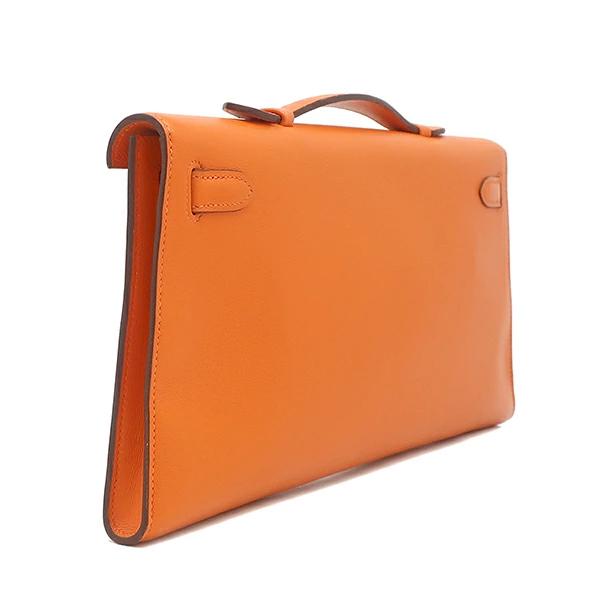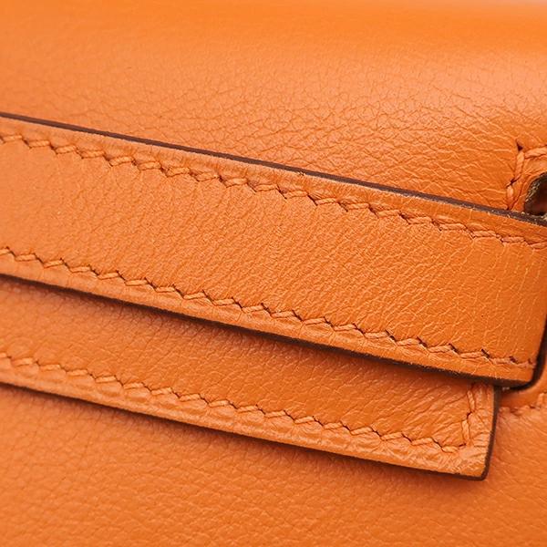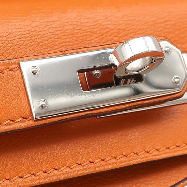 ▲クリックで拡大されますエルメス HERMES ケリー ロング ポシェット ケリー ハンドバッグ ヴォースイフト オレンジ クラッチバッグ シルバー金具 □J - レディース 【箱】定番 人気 美品 【中古】