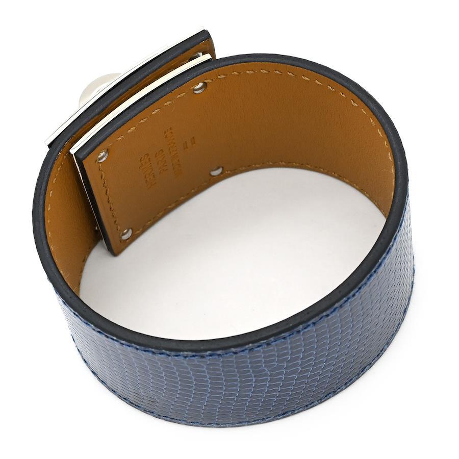 Hermès Kelly Dog Lizard Bangle, Blue Bracelet with Large Metal Buckle