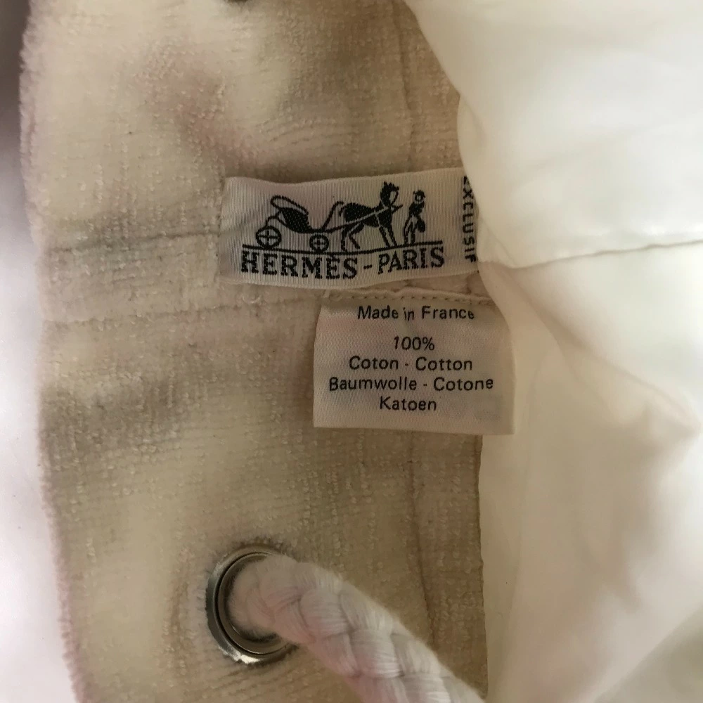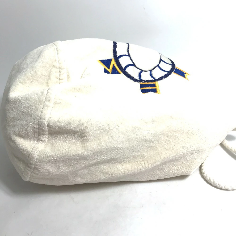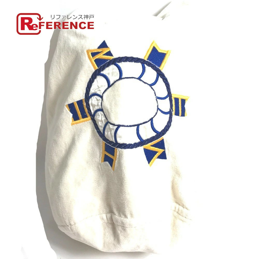 HERMES Marine Print Drawstring Pile Shoulder Bag, Cotton, White, Women's [Pre-owned]