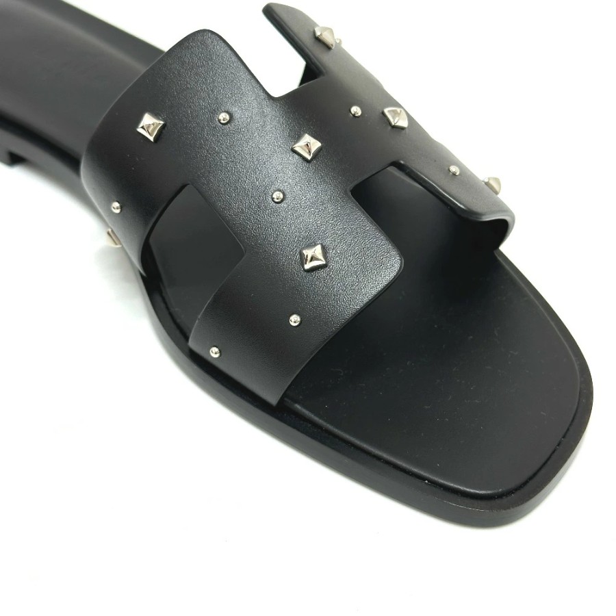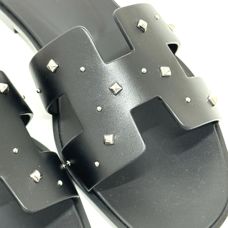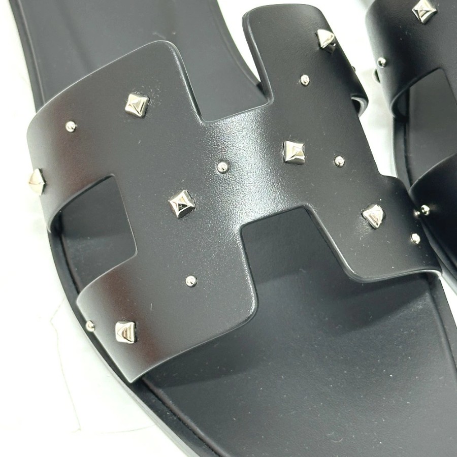 商品説明アイコニックなメドールスタッズと、エルメスを象徴する「H」カットアウトが特徴的な、洗練されたデザインのサンダルです。