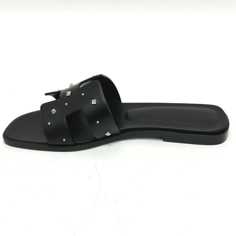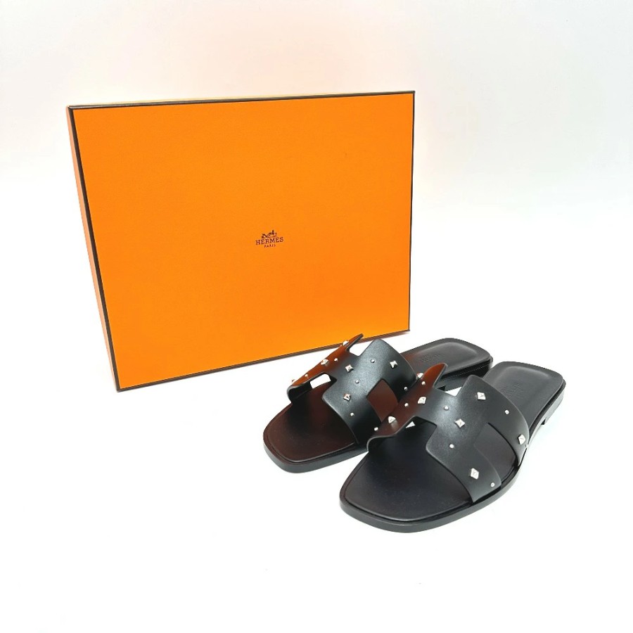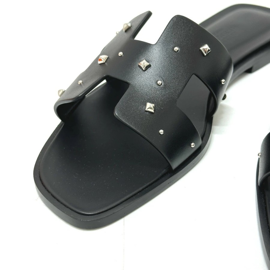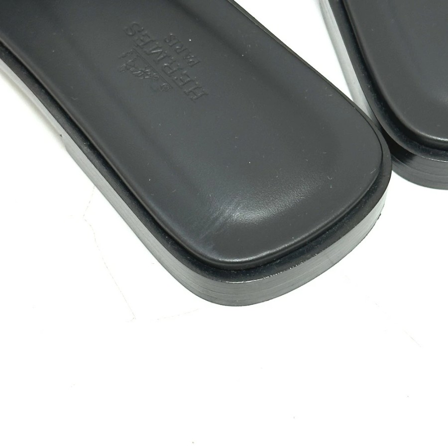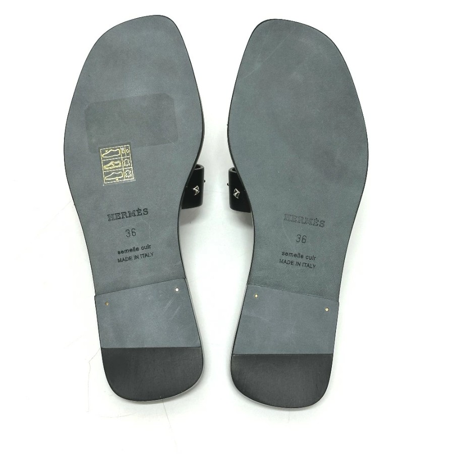 HERMES Medor Oran Flats, Apparel, Shoes, Sandals, Leather/Wood, Women's, Black, Unused [Pre-owned]