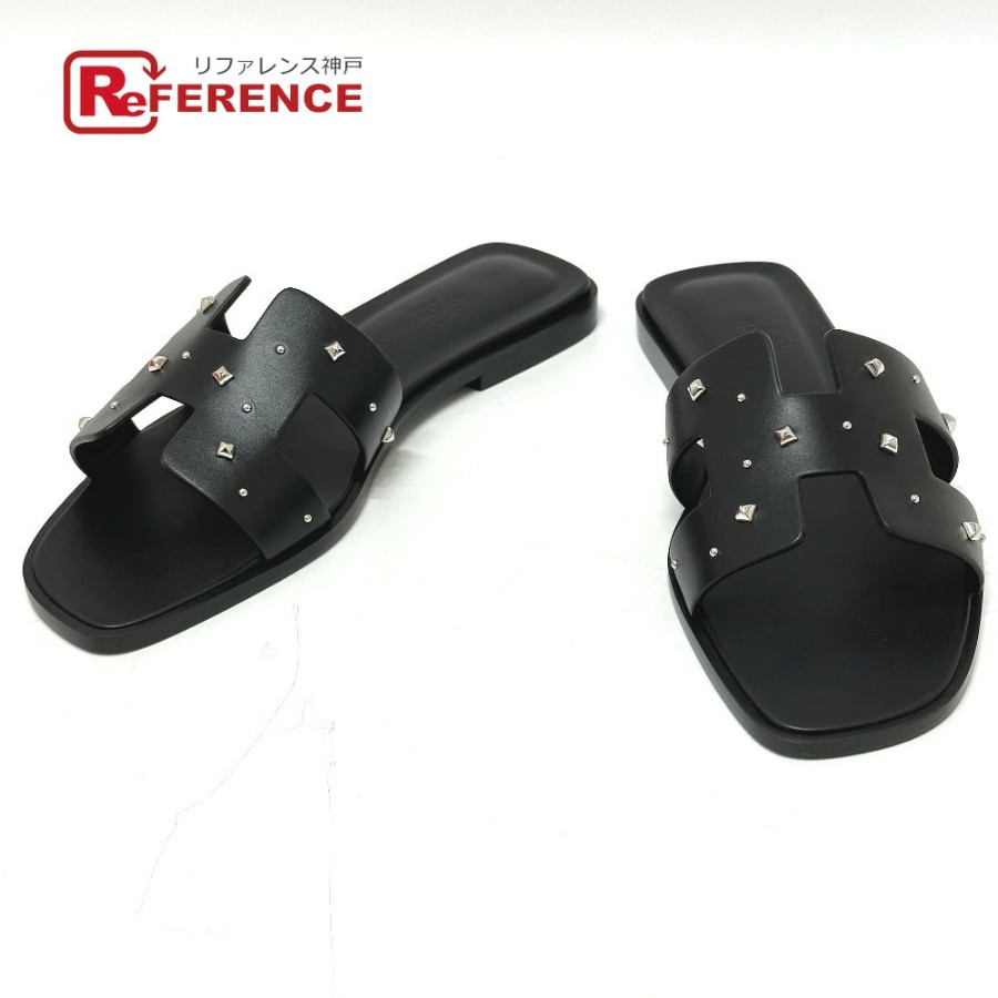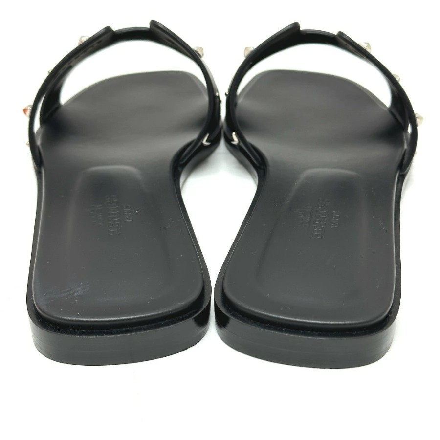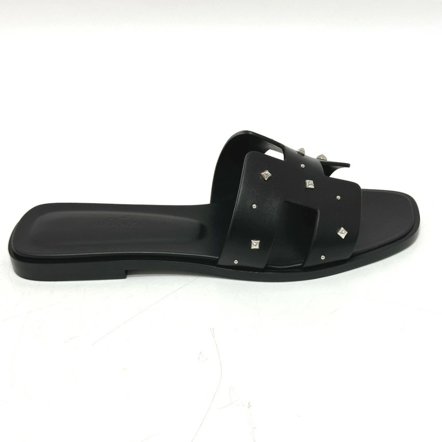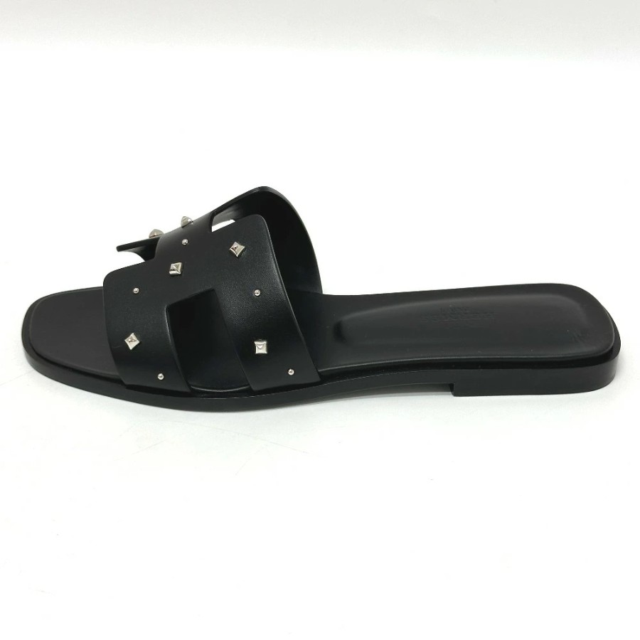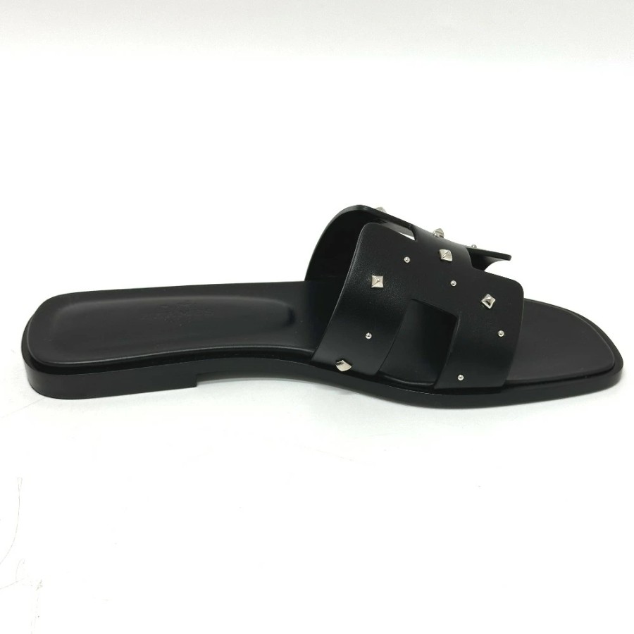 HERMES Medor Oran Flats, Apparel, Shoes, Sandals, Leather/Wood, Women's, Black, Unused [Pre-owned]