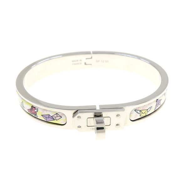 ■採寸手首まわり:約16cm 幅:0.8cm■素材表記なし■コメントエルメスからブレスレット ミニクリックケリーが入荷しました!小ぶりながらも存在感がある、ターンロックのケリー金具が素敵なブレスレット☆シルバーメタルとパステルカラーのデザインも相性がよく可愛らしい一品です!全体に極細かいスレや拭き取りで改善する程度のくすみ、背面のキズが見受けられる為Bランクでのご紹介となりました。着用時に目立つダメージや汚れはなく、まだまだ問題なくご着用いただけるお品となっております◎