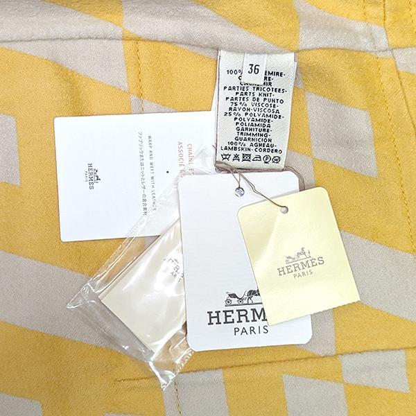 【ブランド】HERMES エルメス------------------------【商品名】マウンテン ジップコート------------------------【ライン】ダブルフェイス インプリメ------------------------【型 番】H720122DBN536------------------------【製造国】フランス------------------------【カラー】ジョーヌドール(イエロー)※ソレイユやライムのような鮮やかさの中にも上品なきらめきが漂う濃いイエローゴールド。2012年春夏新色。------------------------【素 材】[全体] カシミヤ[革] ラムスキン------------------------【サイズ】サイズ表記:36(S・7号)[平置き実測定]肩幅:約44cm身幅:約52cm着丈:約96cm袖丈:脇下から約42cm------------------------【付属品】ガーメントカバー / ハンガーブランドタグ / エルメスジャポンタグ※ガーメントカバーに汚れがございます。------------------------商品ランク 【S】 (未使用品(展示品またはアウトレット商品含む) 未使用品だが長期保管や展示により明確なダメージ等がある商品。アウトレット商品も含まれます。)