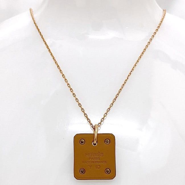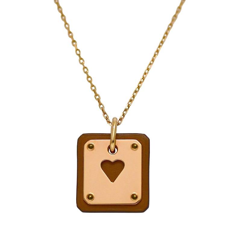 ☆---- 商品について ----☆エルメス ネックレス アス ドゥクール PM f-22434 ピンクゴールド ブラウン エースオブハーツ アスドゥクール 美品 ハート GP レザー スイフト 中古 Y刻印 HERMES ハート 金色 茶色 ペンダント スクエア PG ジュエリー 男性 女性 ブランド 本物 鑑定済み