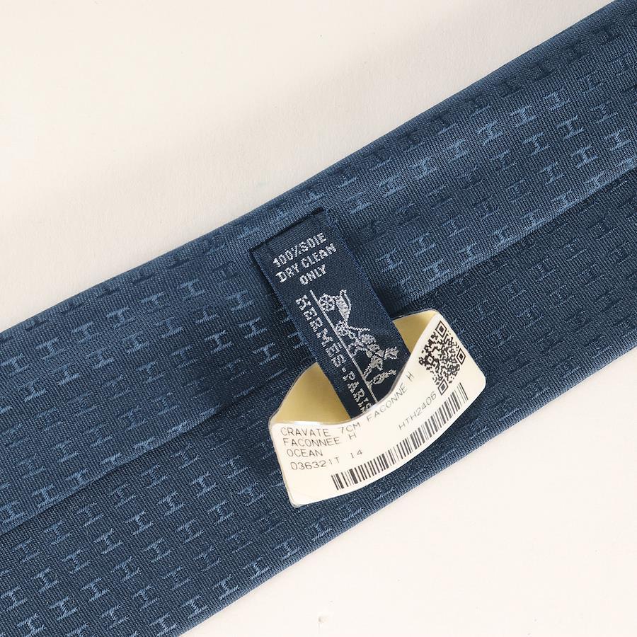 HERMES Necktie | 2024 Autumn/Winter Current Model H Jacquard Silk Necktie (Fasonne H 036322T) | Navy | Made in France | Men's Designer Fashion Item [K4620]