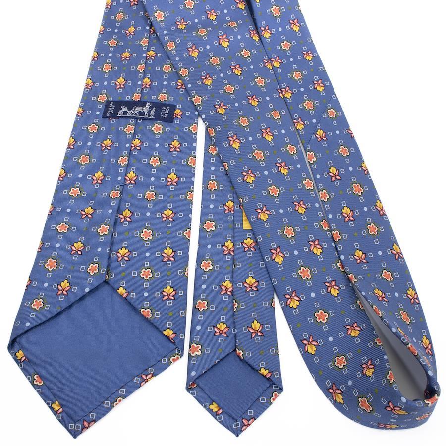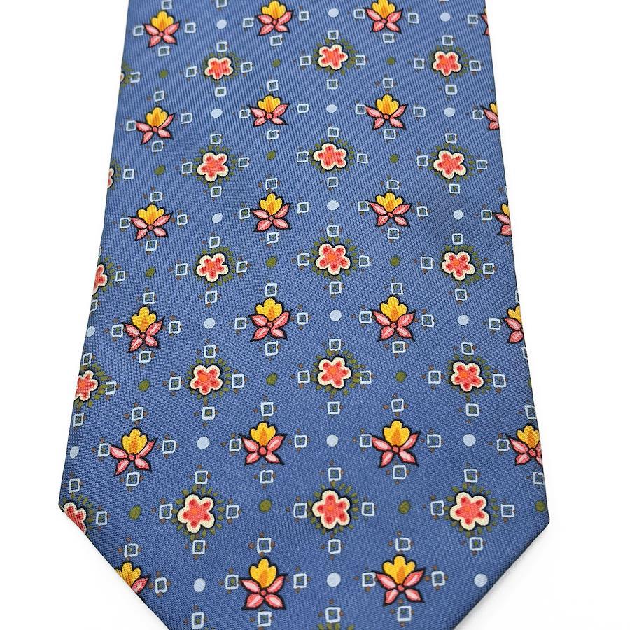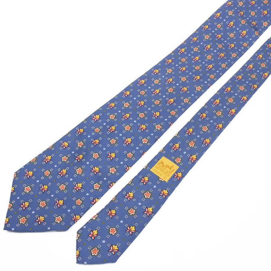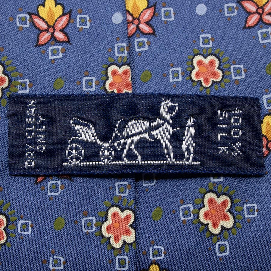 HERMES Necktie, Wide Tie, Printed Tie for Men and Women, Silk, Blue, Red, Orange, Light Blue, White, Business, Casual, All-Over Print, Dots, Floral, Unique, Stylish, Made in France, Beautiful, S546
