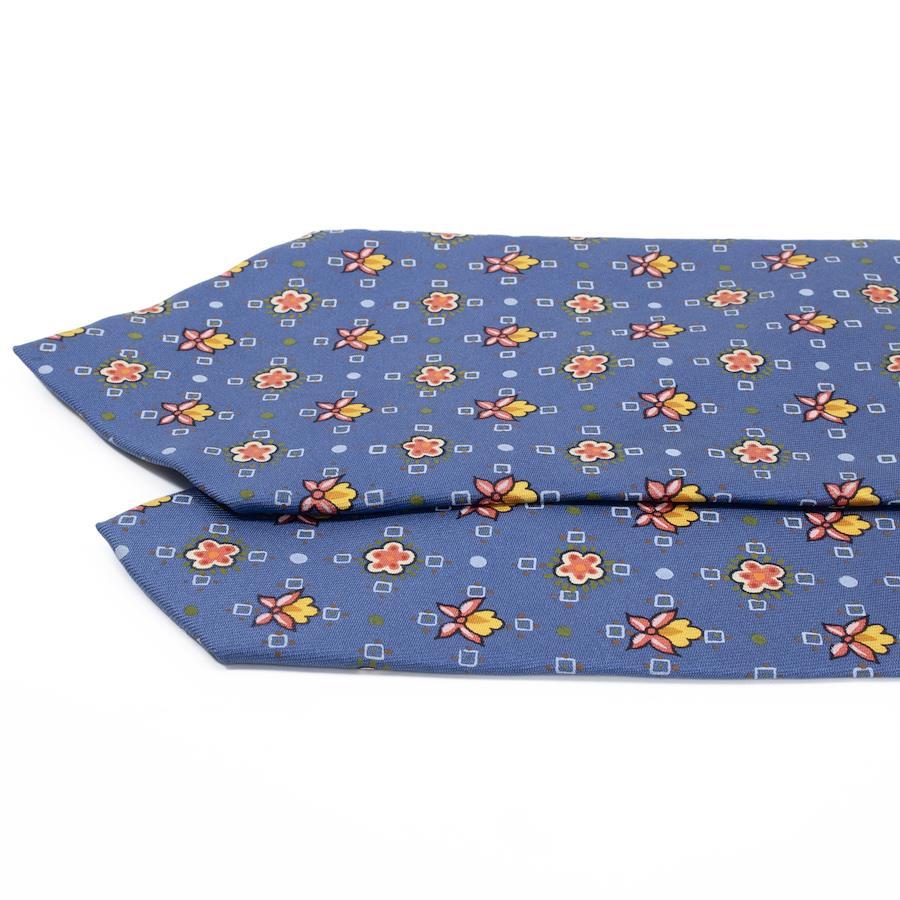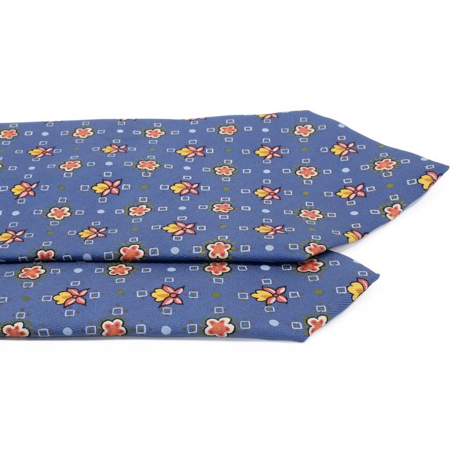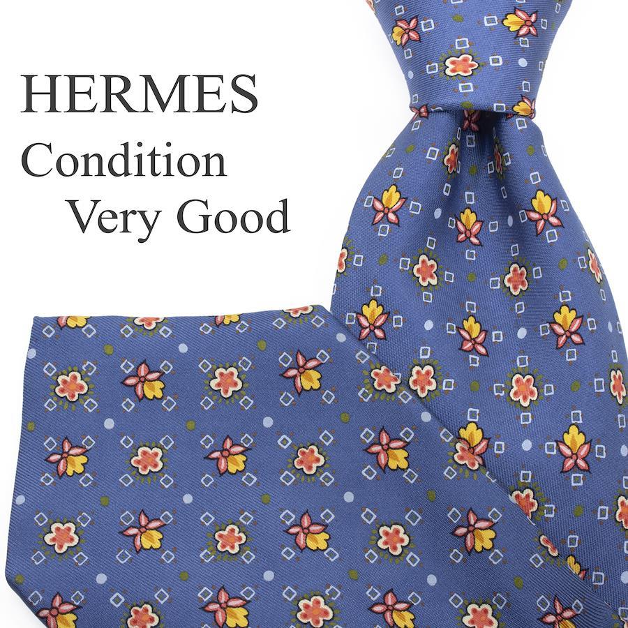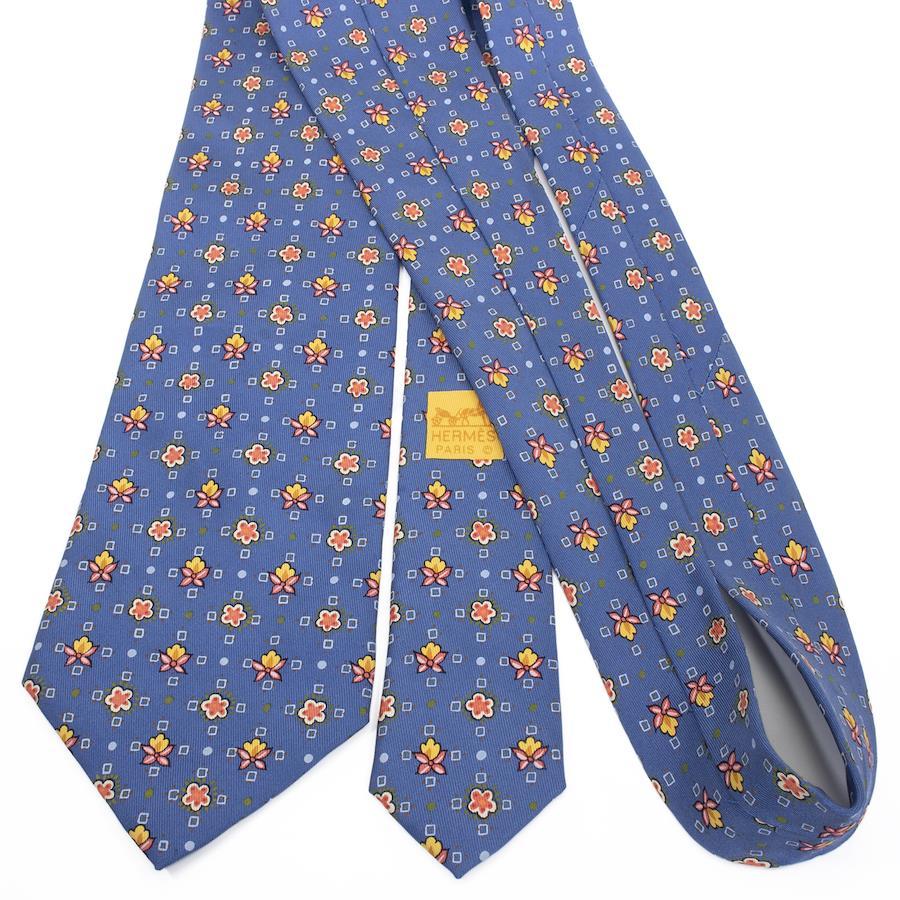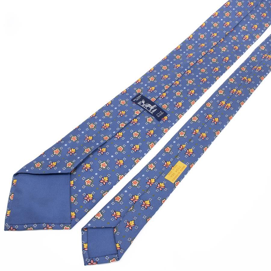 HERMES Necktie, Wide Tie, Printed Tie for Men and Women, Silk, Blue, Red, Orange, Light Blue, White, Business, Casual, All-Over Print, Dots, Floral, Unique, Stylish, Made in France, Beautiful, S546