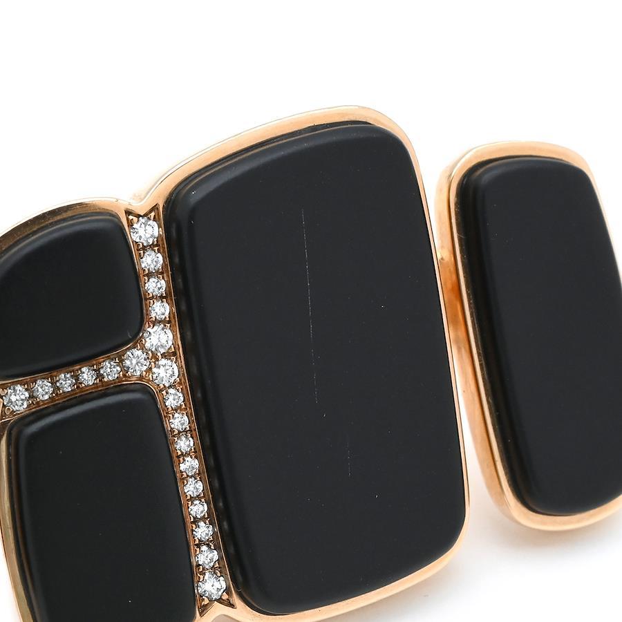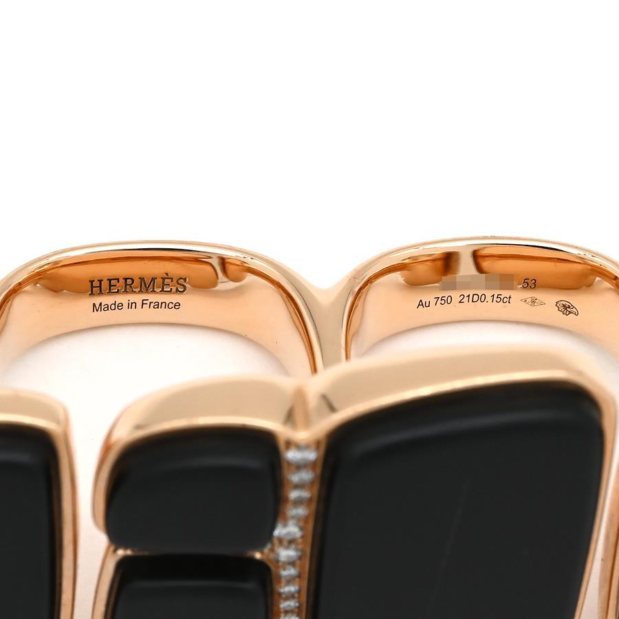 Hermès Niloticus Lumiere Double Ring, Gold #53 (JP13), Pink Gold, Black Jade, and Diamonds, Au750 18K