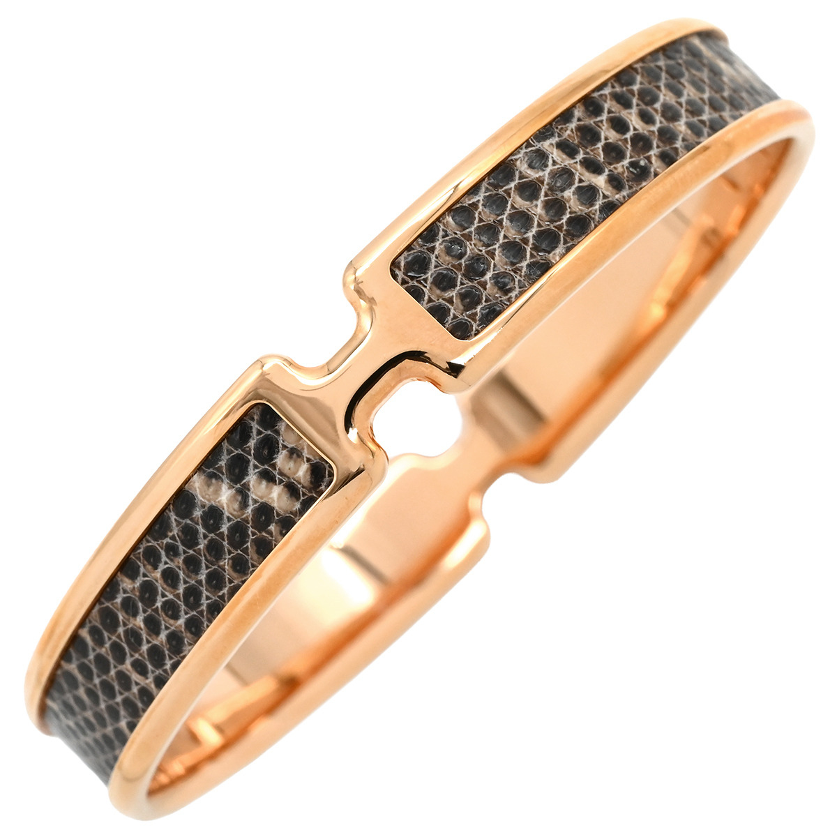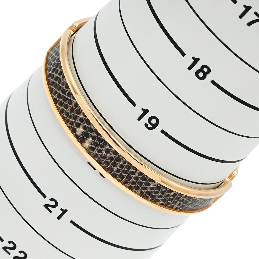 Hermès Olympe Lizard Bracelet in GP with Ombre and Rose Gold Hardware in Pink Gold and Rose Gold Hardware - Men's [Box] Classic, Popular, Excellent ConditionBrand: HermèsModel Number: -FeaturesColor: Ombre and Rose GoldMaterial: Lizard / GPSize: Fits wrists up to 19.5cmMaximum width: 1.1cmWeight: 25.2gAccessories: Box, Dust bag*No accessories other than those listed are included.Rank: S [Overall Condition Details]This item has been stored unused. *Some deterioration may be observed due to storage.[Condition Details] Unused and stored.There are minor scratches due to storage and display.