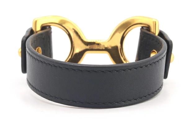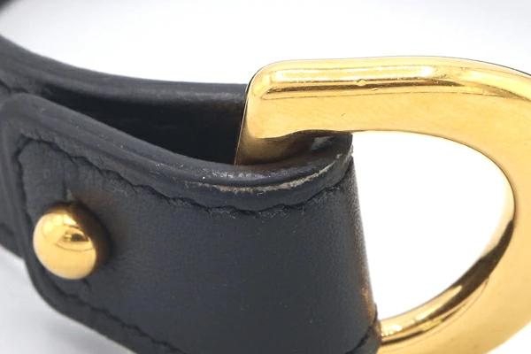 | サイズ | 手首周り(内周):約16.5cm レザー幅:約1.6cm 金具モチーフ:約5.2cm×2.6cm 重さ:約24g |