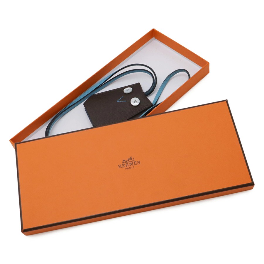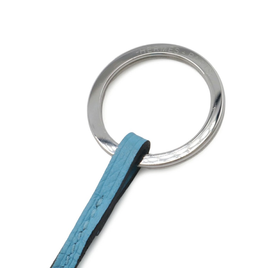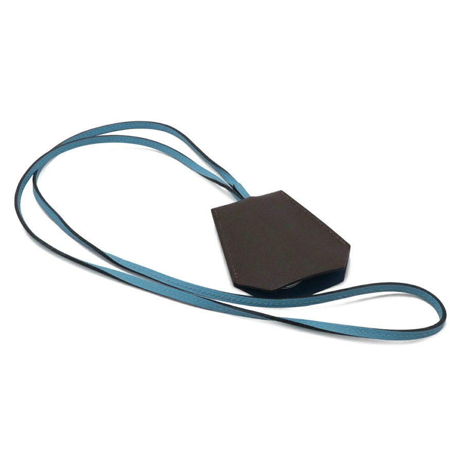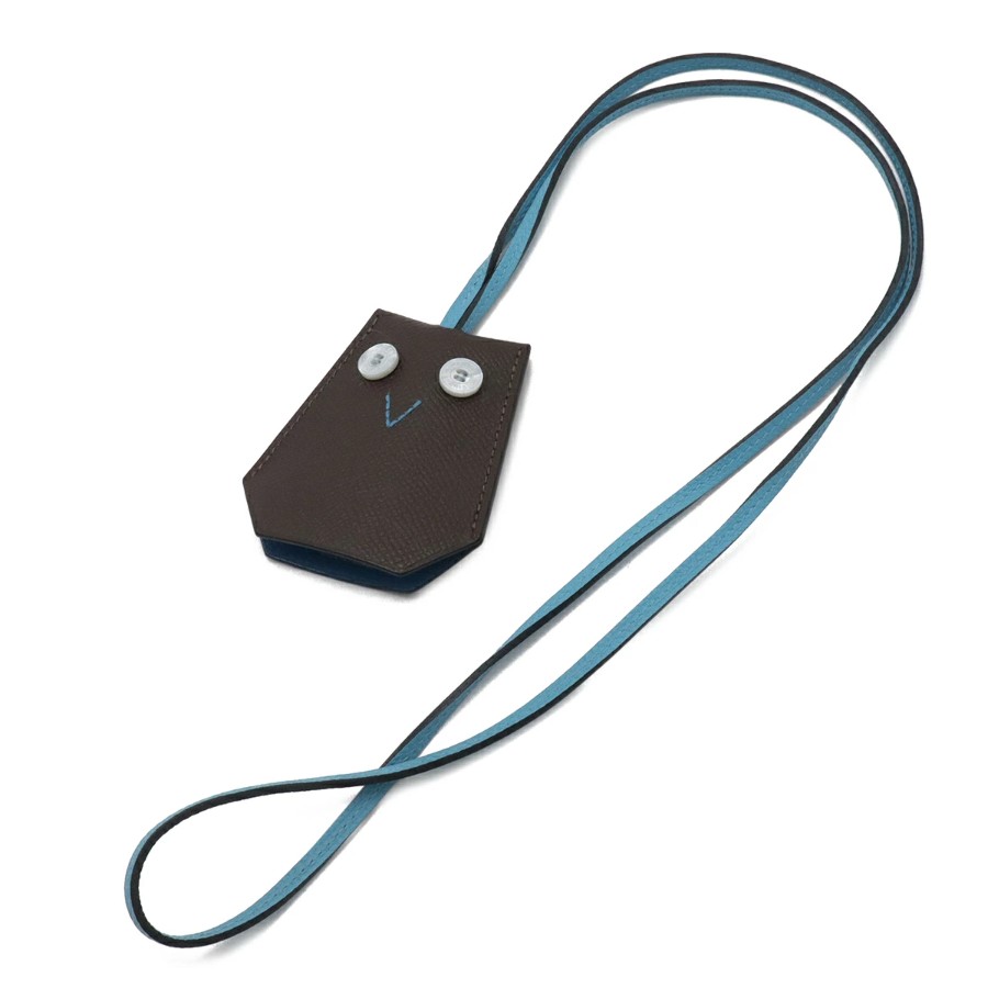 HERMES Petit H Yveton Clochette H Keyring, Owl Motif, Veau Epsom Leather, Dark Brown/Light Blue [Pre-owned]