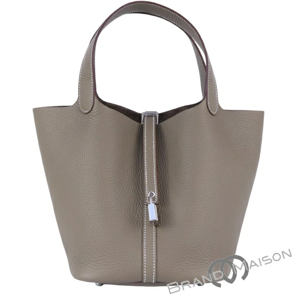 Hermes Picotin Lock GM / Taurillon Clemence Leather / Etoupe / G Stamp / Palladium Hardware / Unused / Women's / HERMES [Pre-owned]