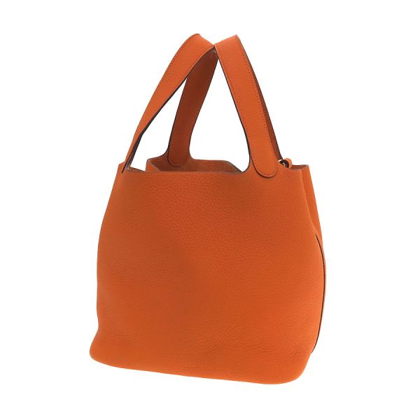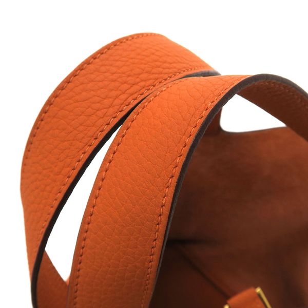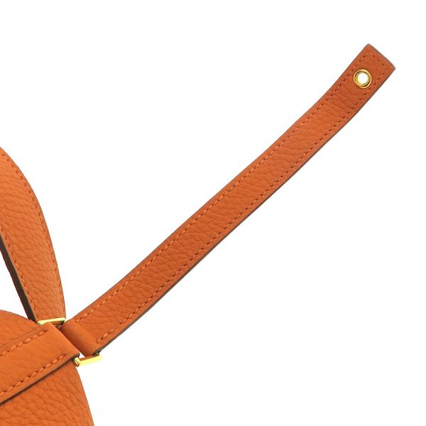 エルメス ピコタンロックMM参考色:オレンジ参考素材:トリヨンクレマンス金具:ゴールド刻印:U刻印(2022年製)付属:カデナ 、鍵1本普段使いに最適なエルメスのカジュアルバック『ピコタンロックMM』が入荷しました☆ コロンとしたフォルムが可愛らしく、男女関係なくお使いいただけるモデルとなっております♪中間的な大きさとなる“MMサイズ”となる為、お財布やスマートフォンといった小物類等に加え、500mlサイズのペットボトル等も収納可能なサイズ感となり便利です。大きな間口でお荷物の出し入れがし易く、また、丈夫な素材で普段使いに最適な人気モデルです!状態はAランクとなっており、本体の型崩れ、表面のスレ感、ハンドルのスレ感、コバスレ、金具部分の小傷、内部のスレ感、毛羽立ち感を感じます。目立った使用感ダメージは抑えられた印象です。是非いかがでしょうか?