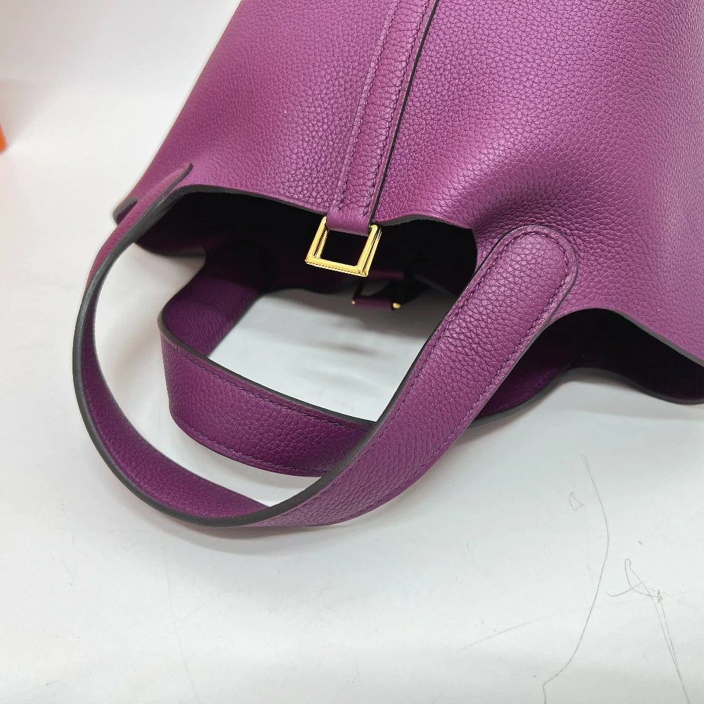 | 商品説明 | エルメスらしいコロンとしたフォルムと、深みのある上品なパープル「アネモネ」が魅力。上質なレザーとカデナの輝きが、持つ人のスタイルをクラスアップします。洗練された大人の女性にふさわしい、エレガントなピコタンロックです。 |