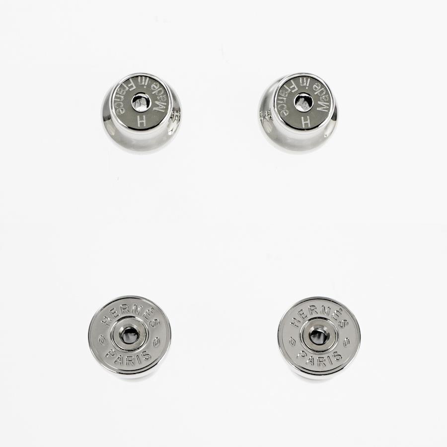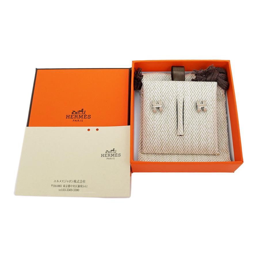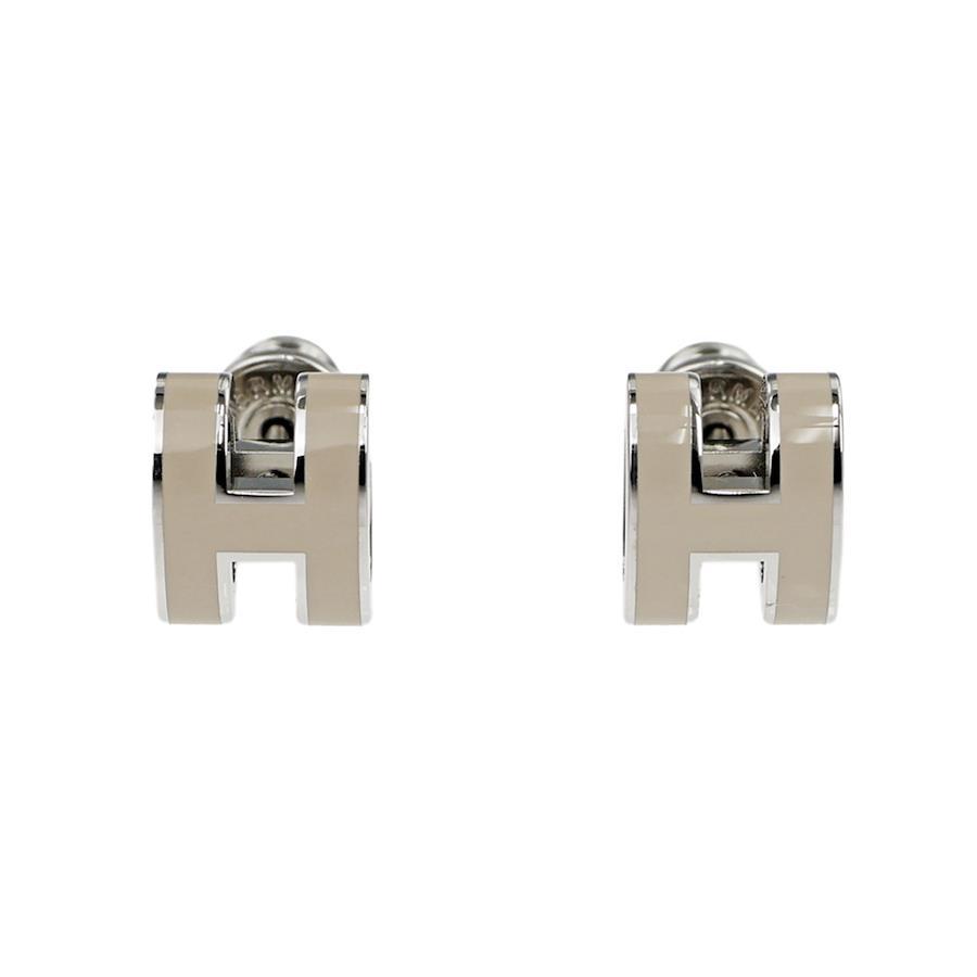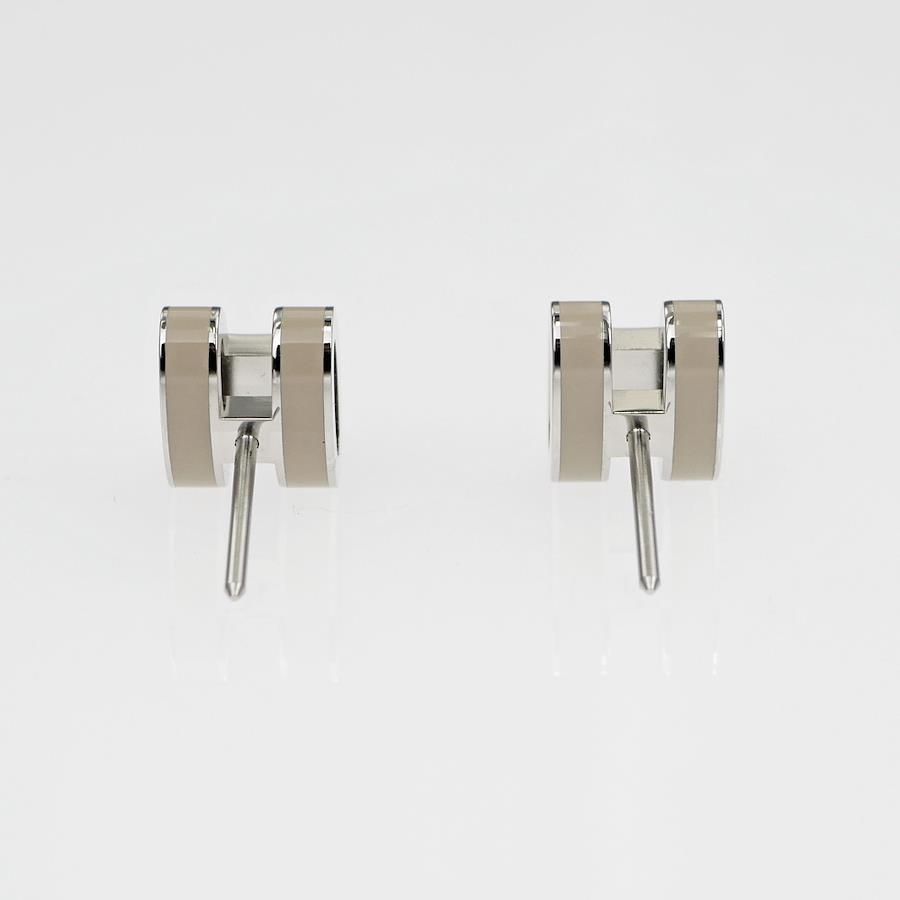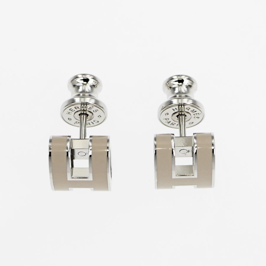 HERMES Pop Ash Earrings, Pair, Marron Glace, Greige, Silver Hardware, Jewelry P0041380