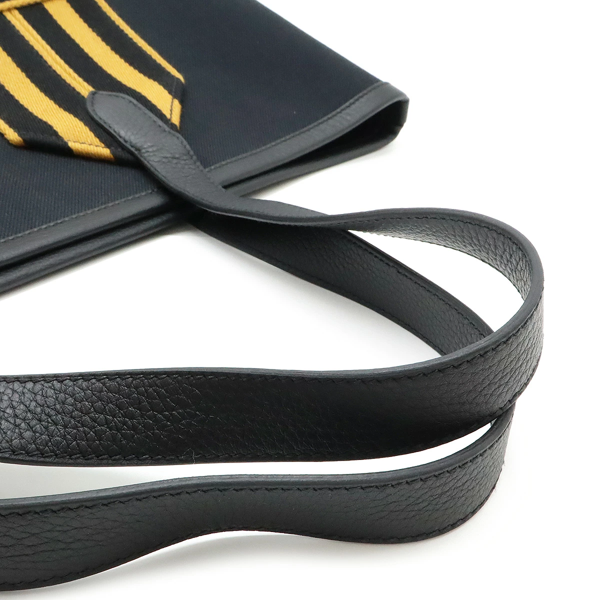 機能性と遊び心溢れるデザインを備えたキャンバスとレザーコンビのバッグ。