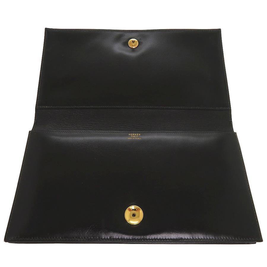 [管理番号]7X1800SP5A3[ブランド]エルメス(HERMES)[対象]レディース[カラー]ブラック[金具]ゴールド[モデル]サンシルボックス[ライン]ヴィンテージ[生産国]フランス[生産年]1980[刻印]○J[サイズ]W約25cm x H約14cm x D約3.5cm[素材]ボックスカーフ ボックスカーフ[仕様]内側:オープンポケット x 3[付属品]保存箱