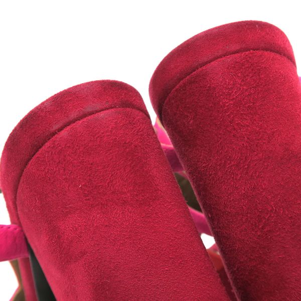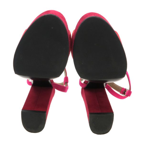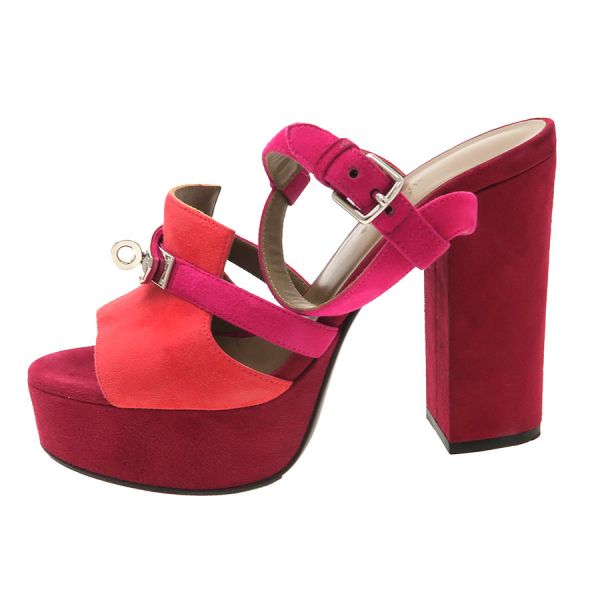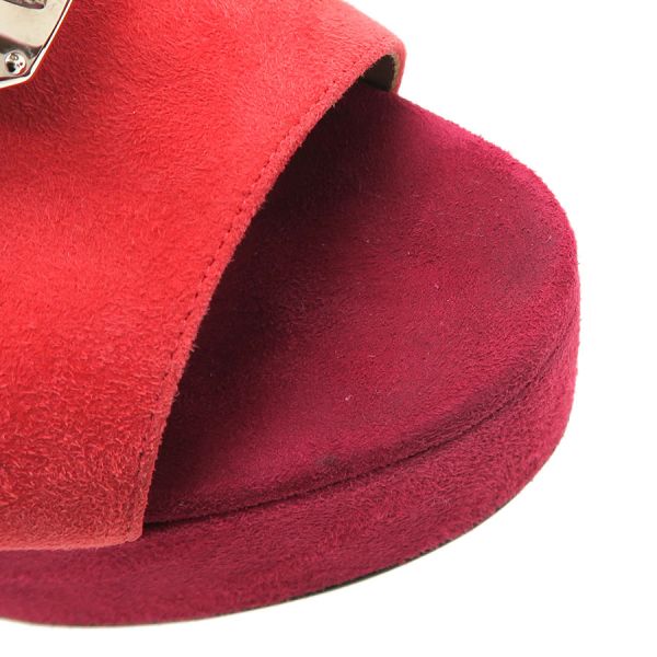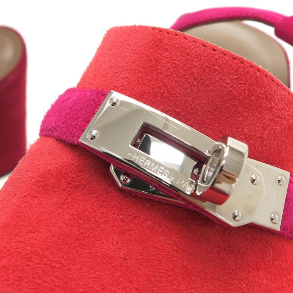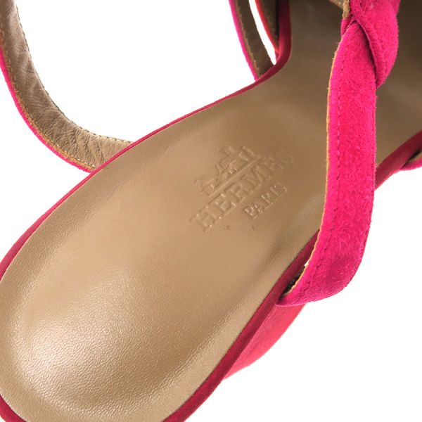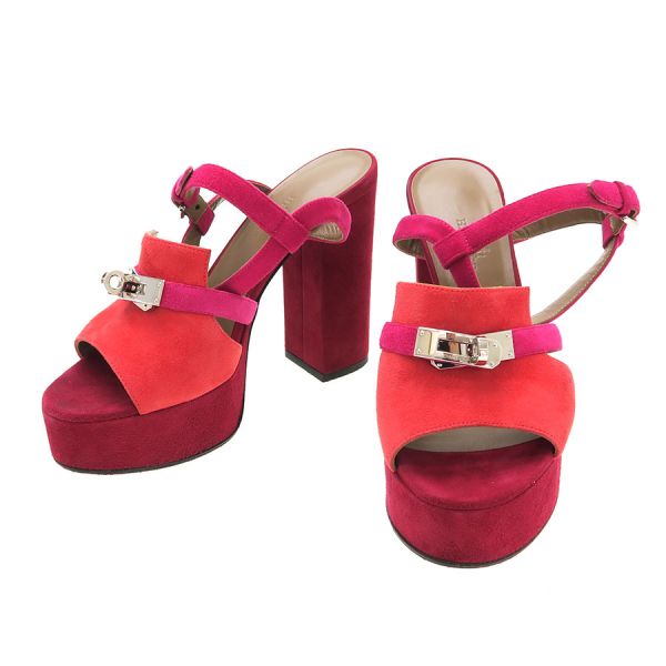 ■採寸#36 日本サイズ:約23.0cm ヒール高さ:12cm 甲幅:約7.5cm■素材表記なし■コメント紫や朱赤などの色合いがオシャレなエルメスのサンダルが入荷!エルメスらしいケリー金具とスエード地の組み合わせが高級感ある一足となっております。若干の外履きの使用感、社外ソール貼り替え、ストラップヨレ、左足金具部分のキズ、中敷きの指跡、スエード地サイドなどスレやすい箇所のスレ白っぽさ、かかとやつま先などのスレや黒ずみなどある為Bランクでの評価になります。大きな型崩れなどはなく通常使用には問題ありません◎※中古品の為、ヒールのゴムに劣化が出ている場合がございます。新しいゴムに替えて頂いてからのご試着をお勧め致します。