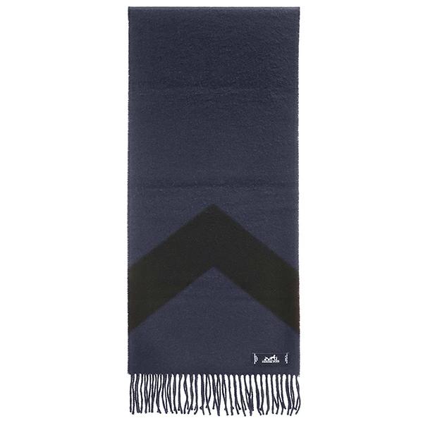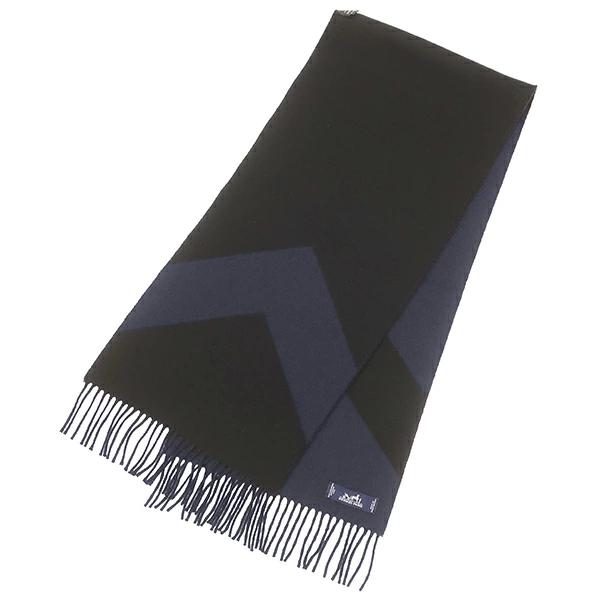エルメス HERMES カザック シェブロン マフラー カシミヤ ネイビー×ブラック 黒 紺 バイカラー - メンズ レディース ユニセックス 【箱】定番 人気 美品 【中古】