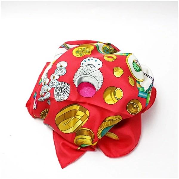 状態上品な艶感のあるシルクスカーフです。エルメスらしい高級感のある色使いと柄が印象的です。