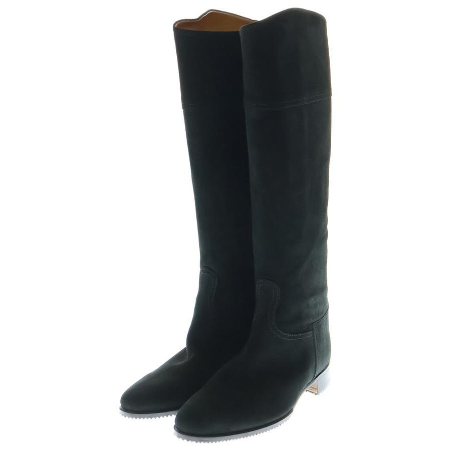 [モデル]スウェードレザー ロングブーツ ブラック レディース