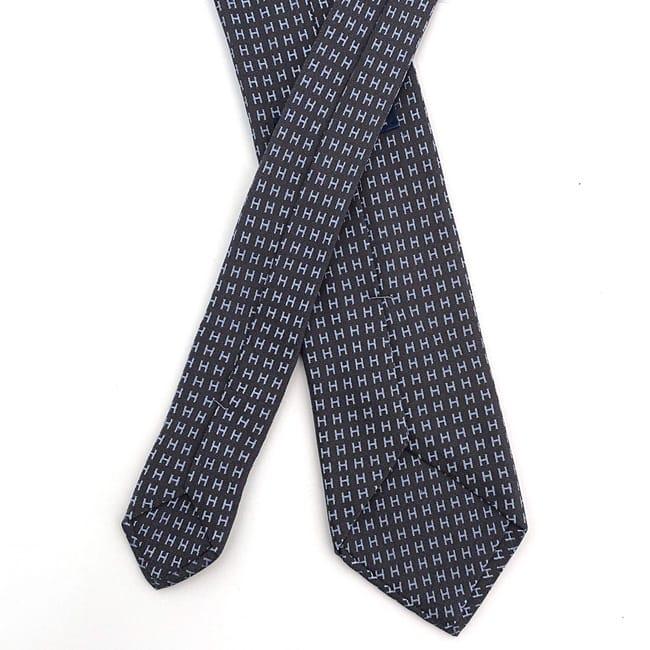 エルメス ネクタイ ec-23210 グレー ネイビー 美品 クリーニング済み シルク 100% 中古 HERMES ビジネス Hロゴ 刺繍 メンズ スーツ 定番 人気 灰色 紺色 お洒落 シンプル 通勤 通学 仕事 エレガント 男性 小物 アパレル 高級感 上品 ブランド 本物 鑑定済み