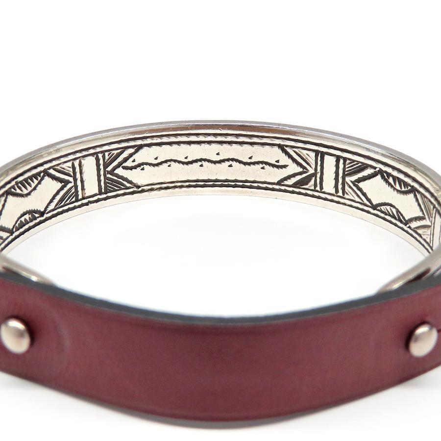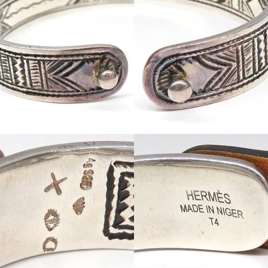 Hermès Touareg Bangle Bracelet, 925 Leather, Silver and Brown, T4