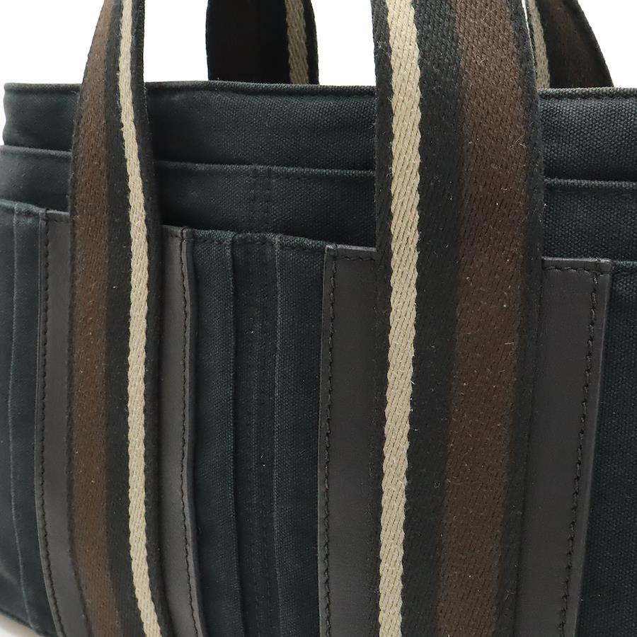 HERMES Troca Horizontal PM Tote Bag, Handbag, Canvas, Leather, Black, Brown, Beige