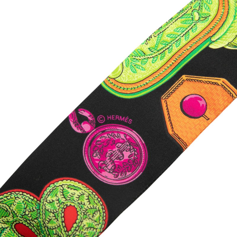 - エルメス ツイリー スカーフ ブラック マルチカラー シルク レディース HERMES 【中古】