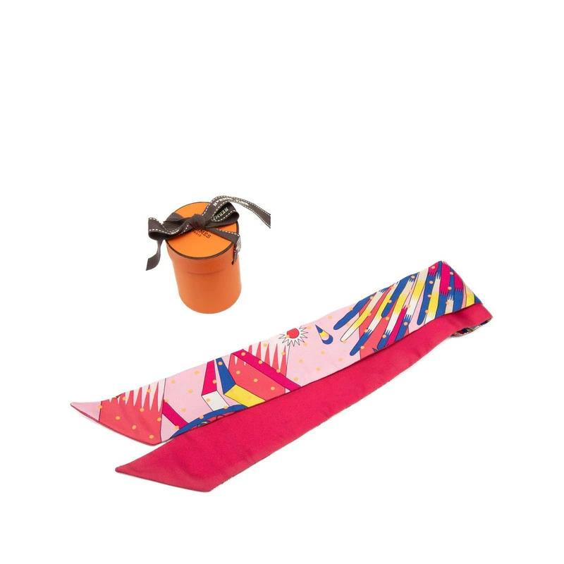 - エルメス ツイリー スカーフ ピンク マルチカラー シルク レディース HERMES 【中古】