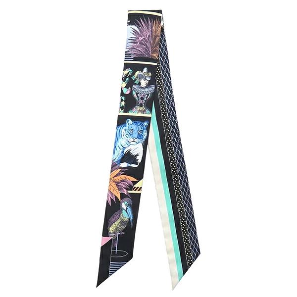 エルメス HERMES ツイリー ツイリー スカーフ シルク ブラック×ブルー×ヴェール 新品 未使用 【グラン テアトル ヌーヴォ】 - レディース 【箱】 【中古】