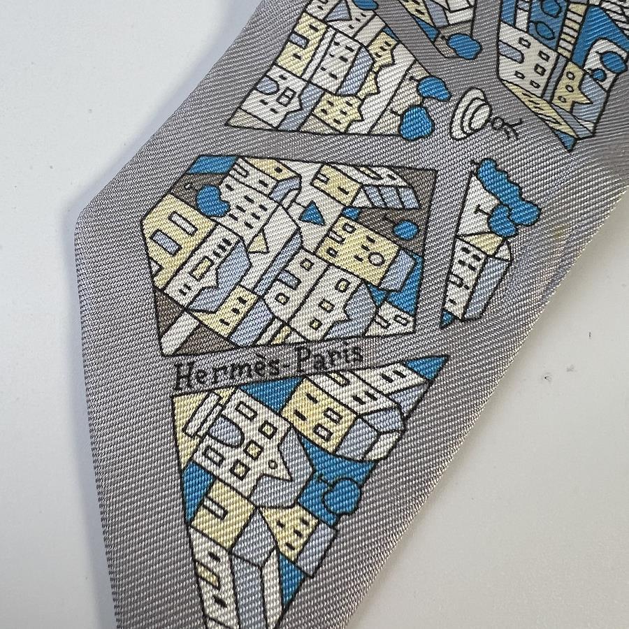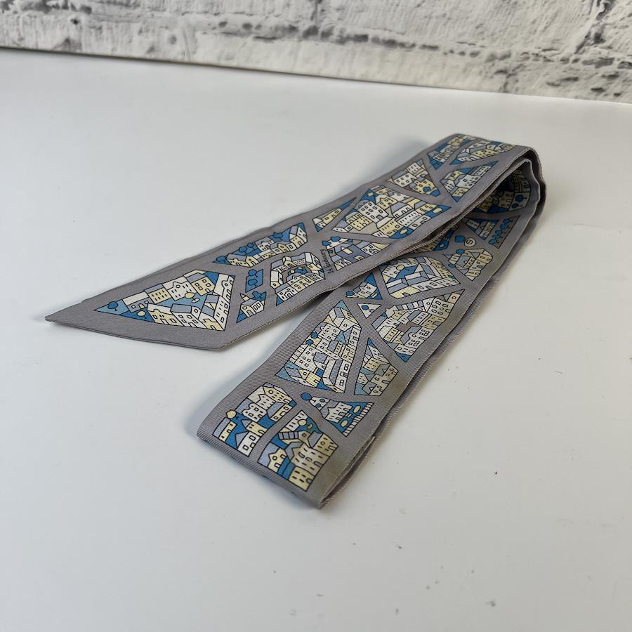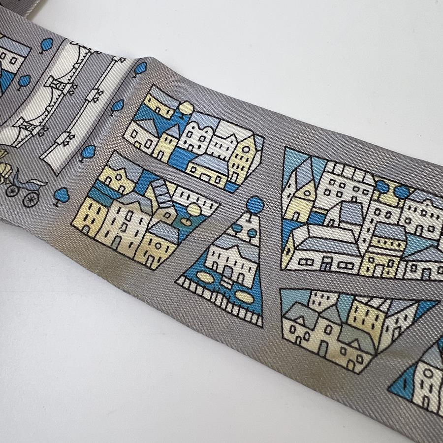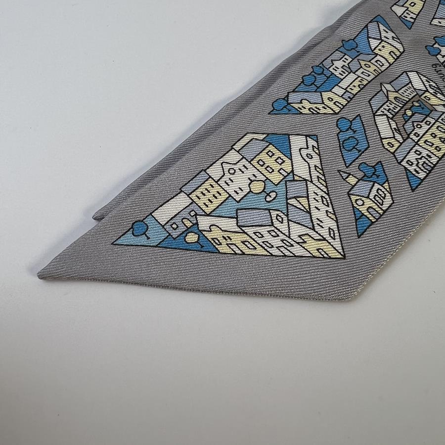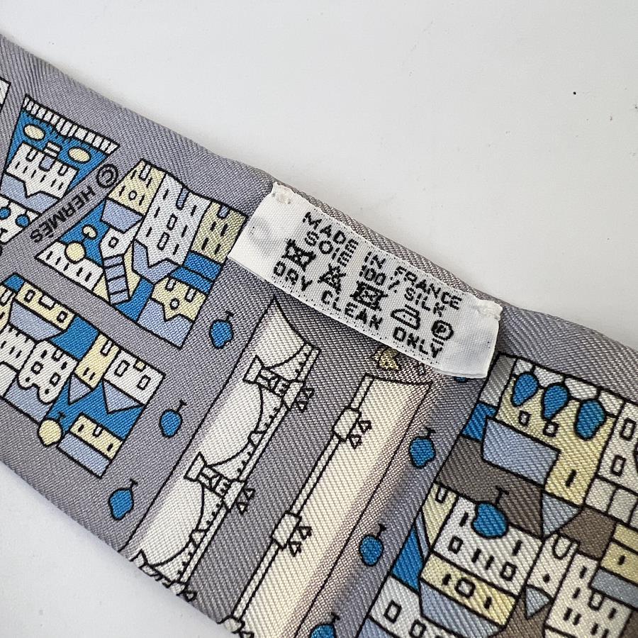 【アイテム】HERMES エルメス ツイリー タグ付き シルク スカーフ グレー A-8559