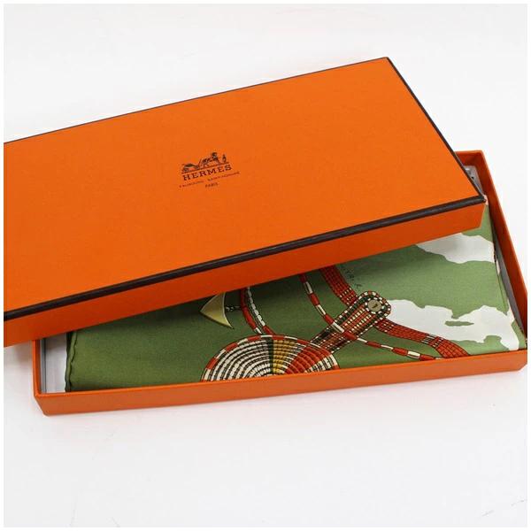 商品名エルメス 未使用・保管品 シルク スカーフ カレ90 『PERLES DU KENTA』ケニアの真珠 グリーン HERMES