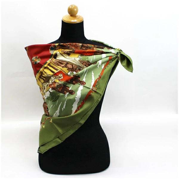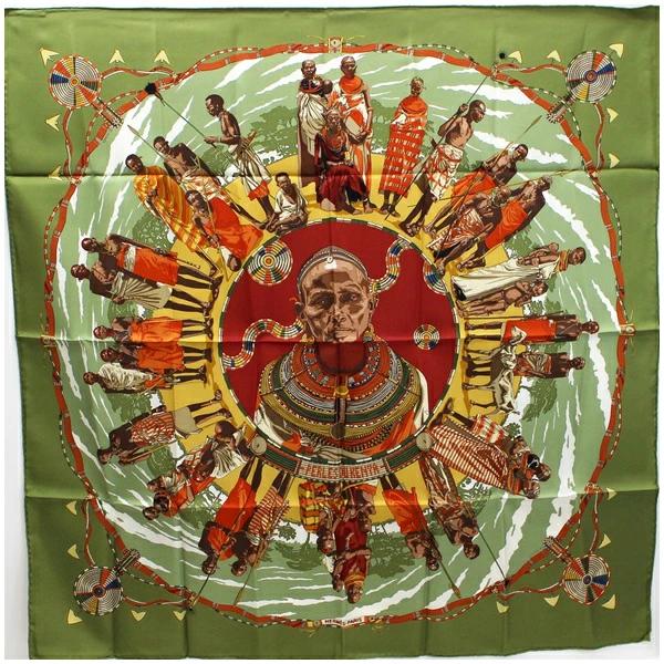 状態 艶やかでサラッとした手触りの上質なシルクスカーフです。ケニアの民族衣装を来た人々がリアルに描かれたインパクトのある絵柄です。 【状態】目立つダメージなし 【特記事項】こちらは未使用品ですが長期保管品となります。この為、保管中についたシミや糸つれ、匂いなどあるかもしれません。あくまでも中古品であることをご理解の上、お買い求めください。 【仕様】付属品/箱(僅かに傷みあり)