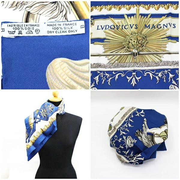 状態 艶やかでサラッとした手触りの上質なシルクスカーフです。中央に馬にまたがったルイ14世が描かれたインパクトのある絵柄です。 【状態】目立つダメージなし 【特記事項】こちらは未使用品ですが長期保管品となります。この為、保管中についたシミや糸つれ、匂いなどあるかもしれません。あくまでも中古品であることをご理解の上、お買い求めください。 【仕様】付属品/箱