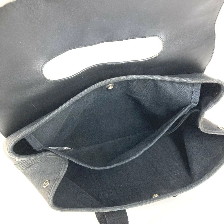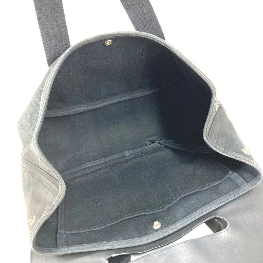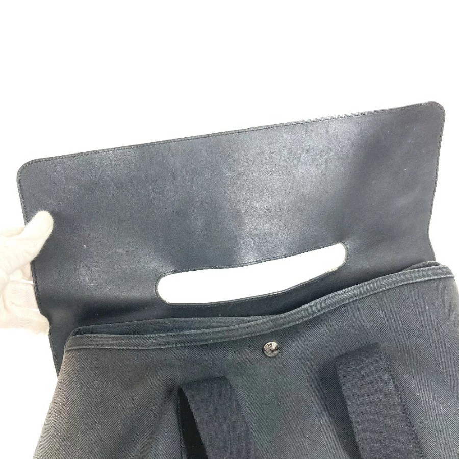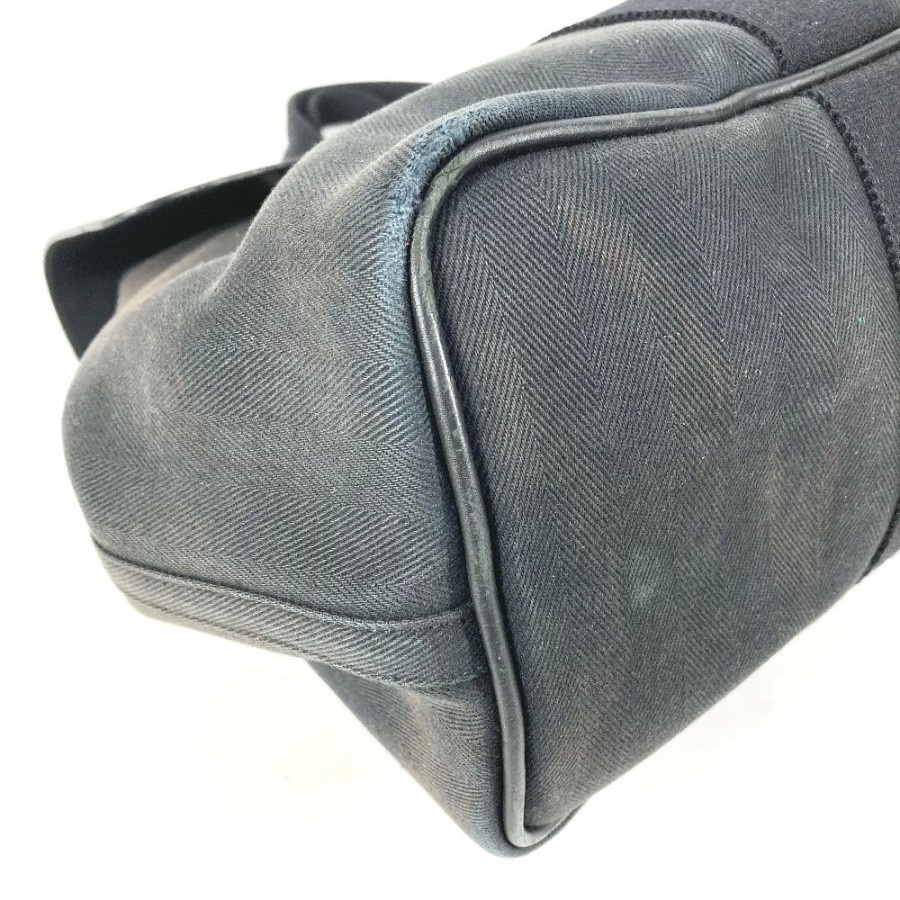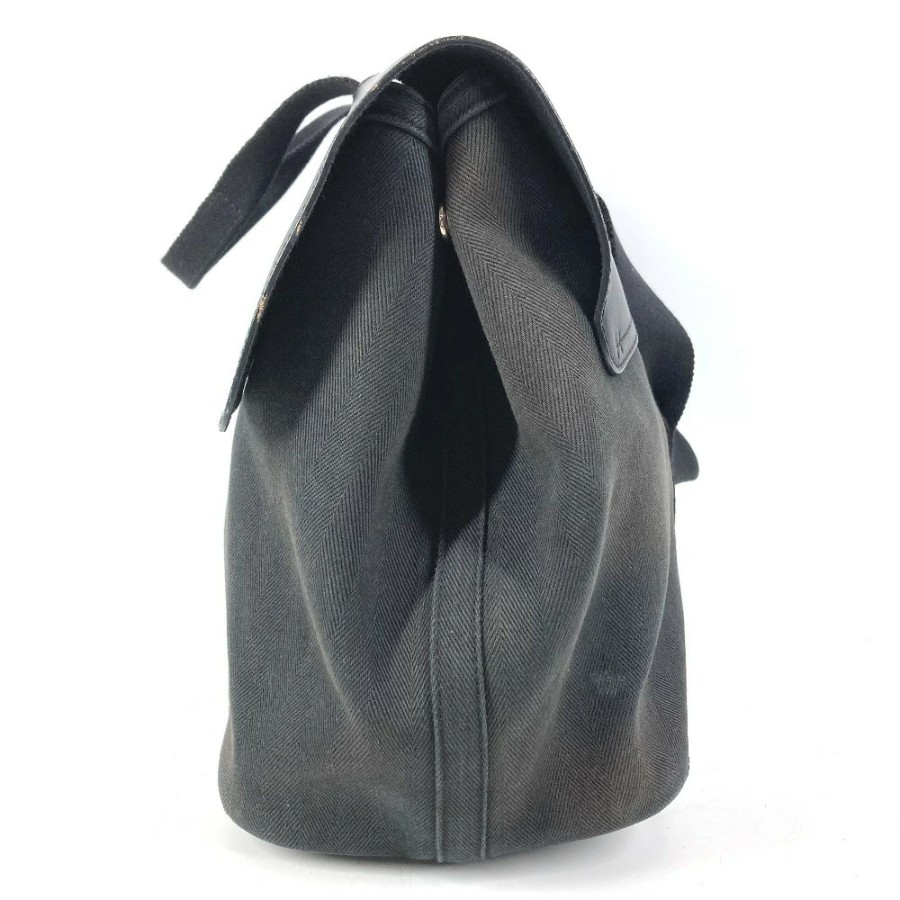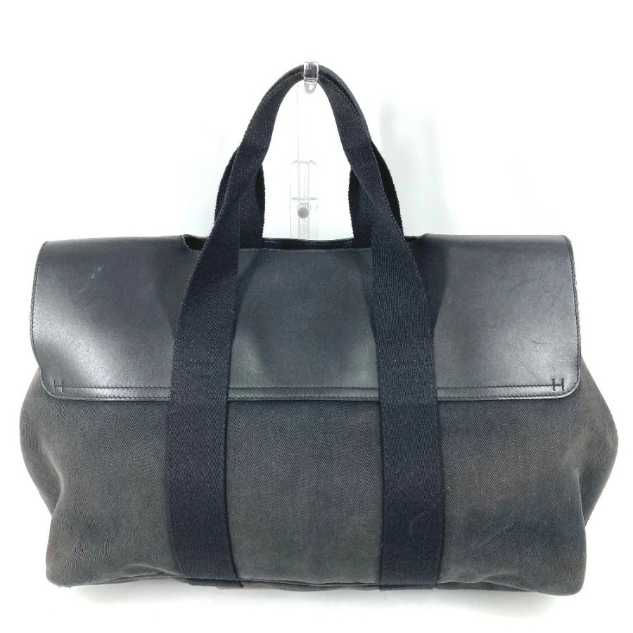 HERMES Valparaiso MM Tote Bag, Flap Tote Bag, Handbag, Toile Chevron Leather, Unisex, Black [Used]